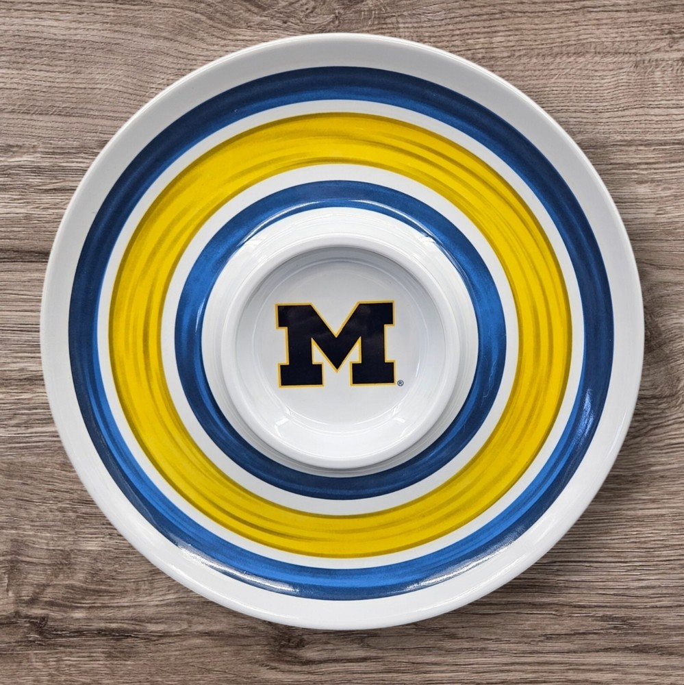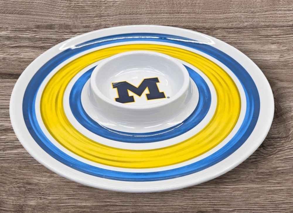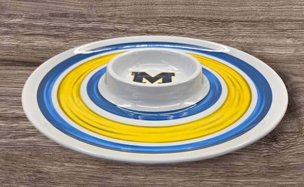 Michigan Wolverines Large Melamine Heat Safe Chip & Dip Plate Bowl This item is in good, pre-owned/used condition. Please see photos for overall condition and purchase accordingly. Please don't hesitate to ask any questions and thank you for stopping by! **Fast Shipping//Purchase With Confidence** ::Disclaimer:: I gladly accept returns. Please note though, on all returns (unless damaged), the shipping back will be paid by the buyer, so PLEASE read description and see measurements before purchase. Thank you!