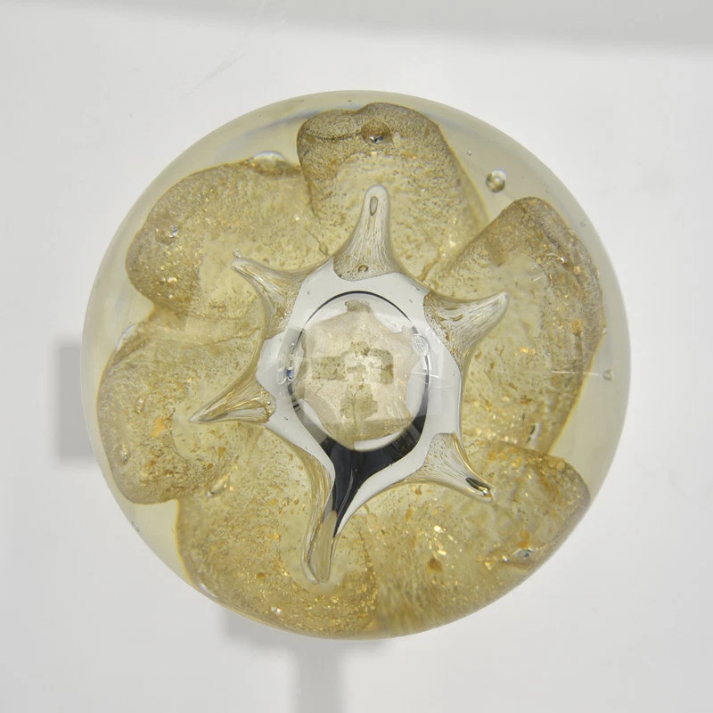 Beautiful large mid century modern art glass paperweight with gold dust. Manufacturer: unknown Marks: unsigned Material: glass Height : ca. 8,7 cm / 3.4" Diameter: ca. 9,8 cm / 3.9" Weight: ca. 1155 g Condition: very good with minimal signs of use and age Mid Century Modern Studio Art Glass Paperweight Gold Dust / Star Shaped Bubble Beautiful large mid century modern art glass paperweight with gold dust and a centered star shaped bubble. Manufacturer: unknown Marks: unsigned Material: glass Height : ca. 8,7 cm / 3.4" Diameter: ca. 9,8 cm / 3.9" Weight: ca. 1155 g Condition: very good with minimal signs of use and age Terms of Sale All items will be shipped via priority air mail A carefully packaging is guaranteed! Payment via PayPal within 7 days Import duties and taxes are the buyer's responsibility For questions please contact us Thank you for your attention! This offer is for the following item only Create your brand with Auctiva's Customizable Templates. Attention Sellers - Get Templates Image Hosting, Scheduling at Auctiva.com.