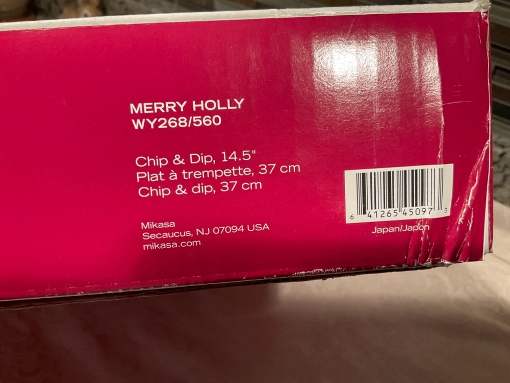 Mikasa Celebrations Collection “Merry Holly” Chip And Dip Platter 14.5” Brand new in package See photos for details and measurements Kept in a smoke free and pet free household I can only ship within the continental United States