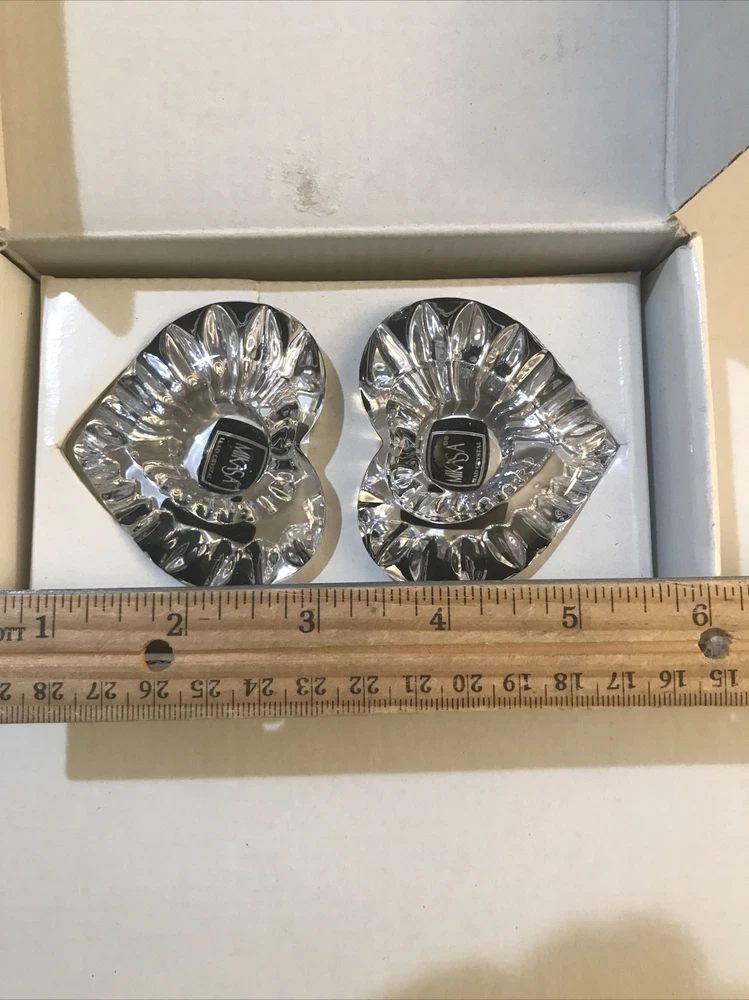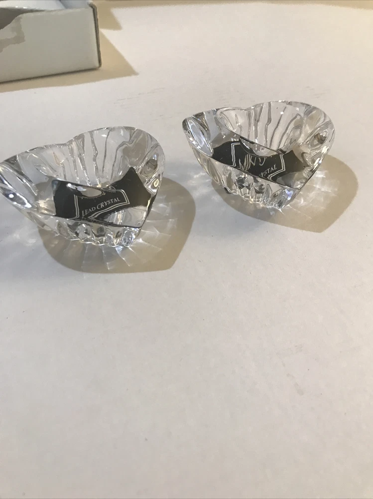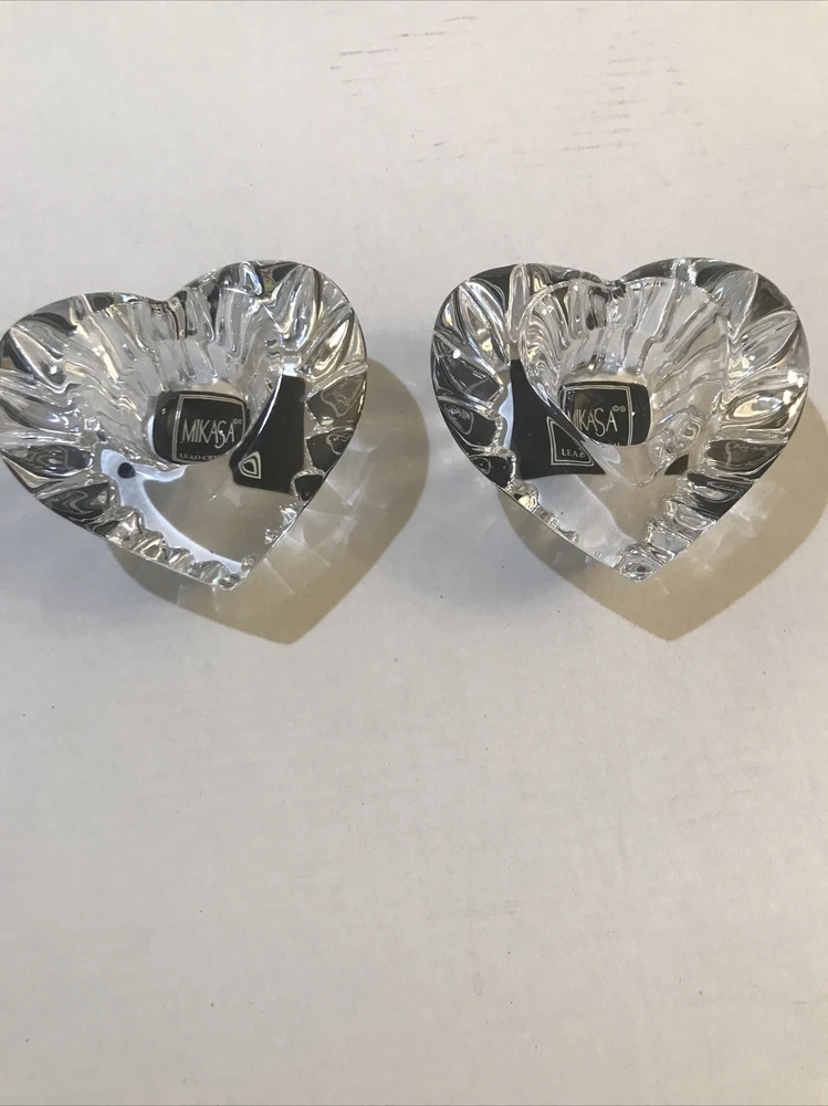 Mikasa Pair Heartfelt Heart Shaped Lead Crystal Candle Stick Holders Taper. Wear to case....