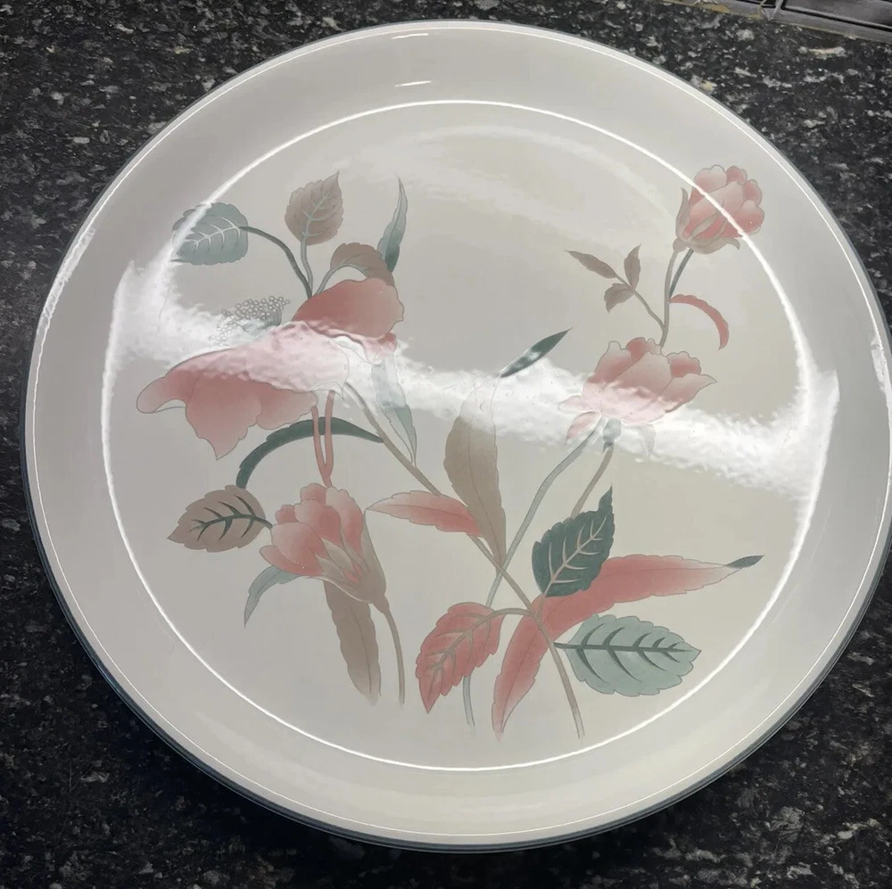 Mikasa Silk Flowers Large Party/Serving/Chip & Dip Platter 14-1/4" Mint!. Absolutely perfect condition. I don’t think it was ever used. Not a mark on it. Please see all pictures and enlarge to see details. See my other listings for more in this pattern. I can combine shipping. Will be packed well for safe shipping.