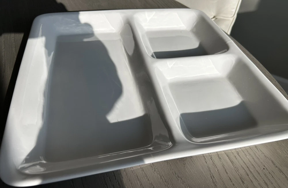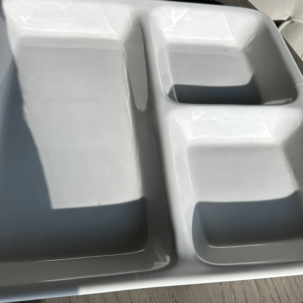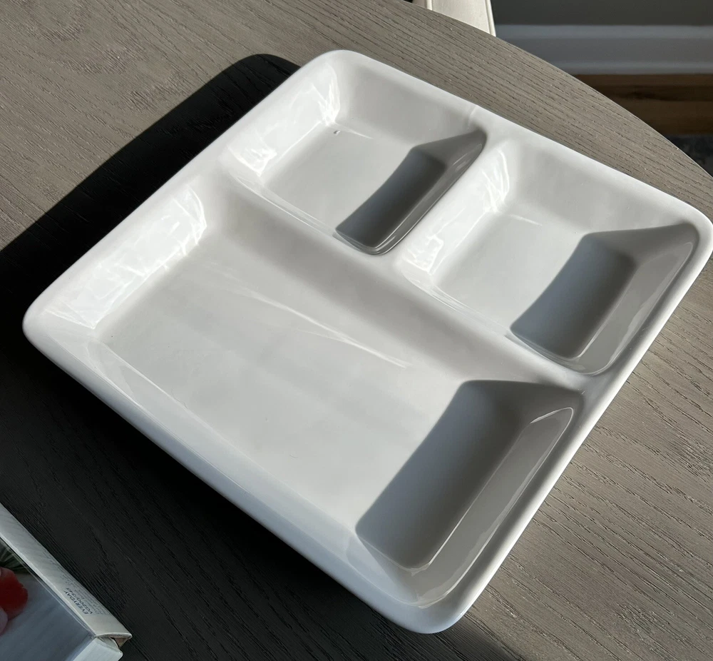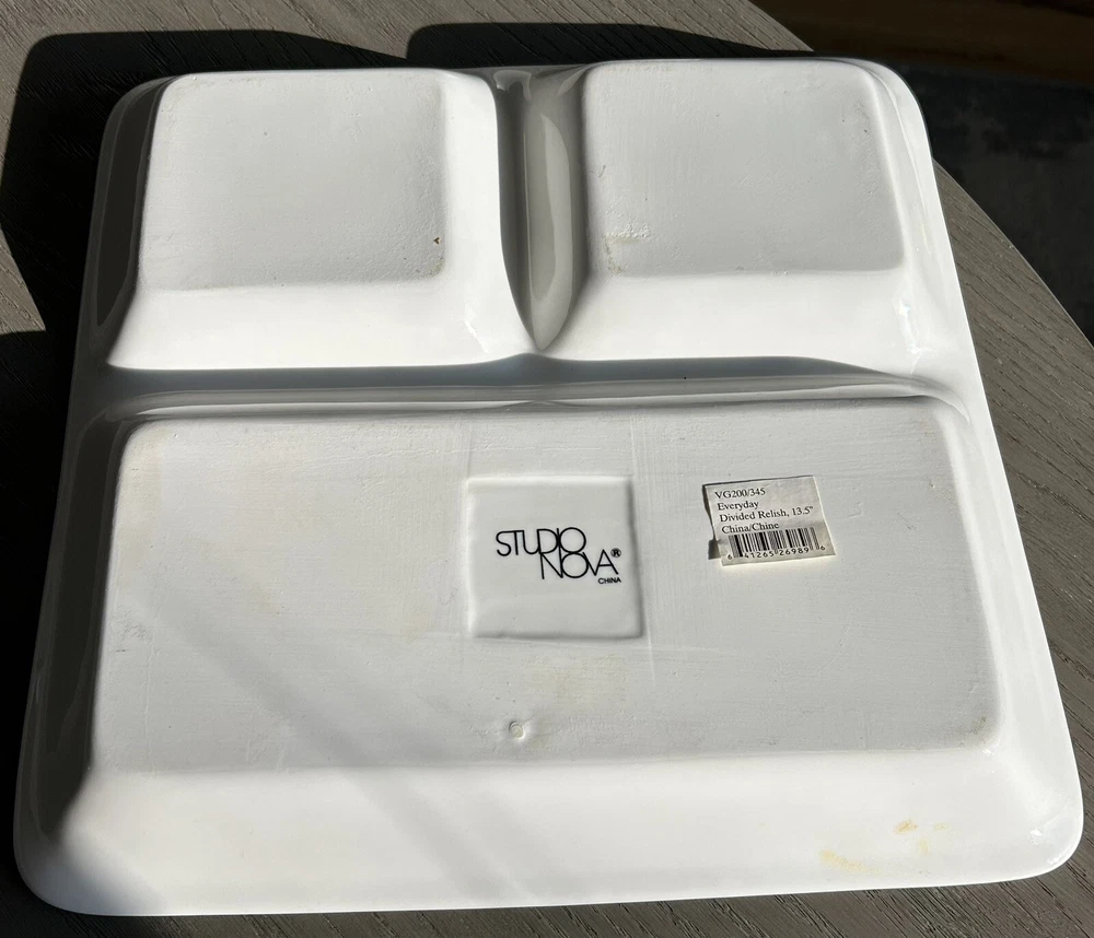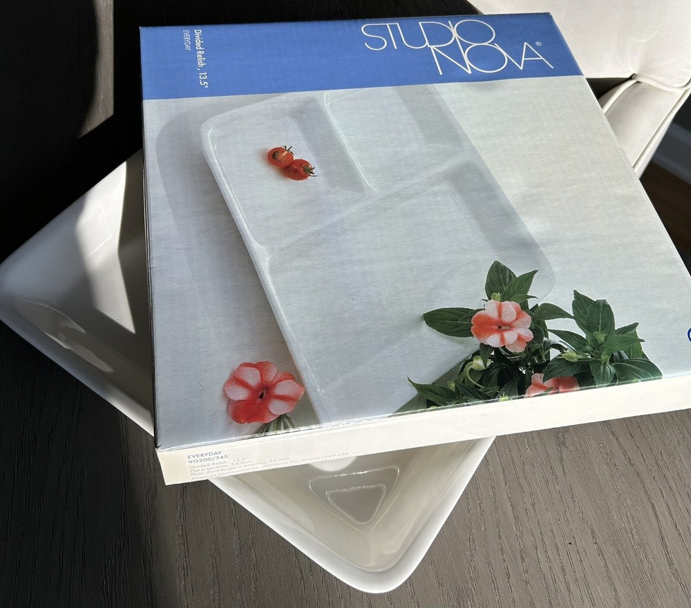 Presenting the Mikasa Studio Nova 13.5 "Divided Relish Tray" - a perfect addition to your dining experience. Crafted with contemporary style, this square-shaped clean white ceramic design. The tray is made of high-quality ceramic material, ensuring durability and long-lasting use. This vintage original is perfect for serving multiple dishes at once, with its divided serving tray design. The tray is manufactured by Mikasa. It is ideal for use in various occasions, including dinner parties and gatherings. Add this exquisite piece to your collection today and elevate your dining experience.