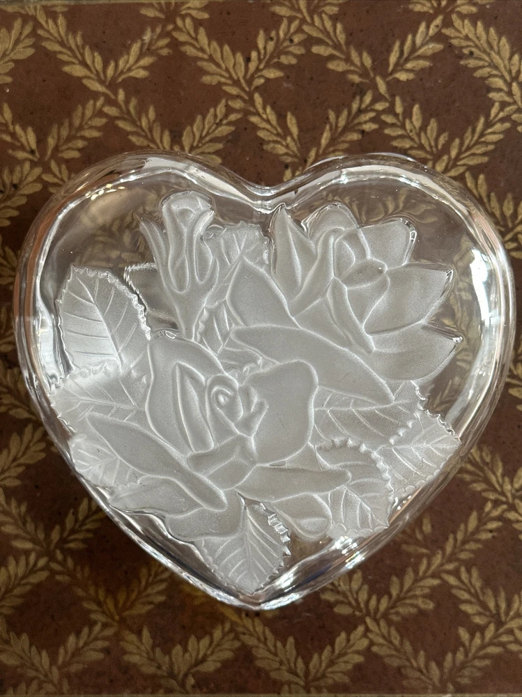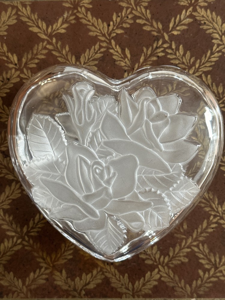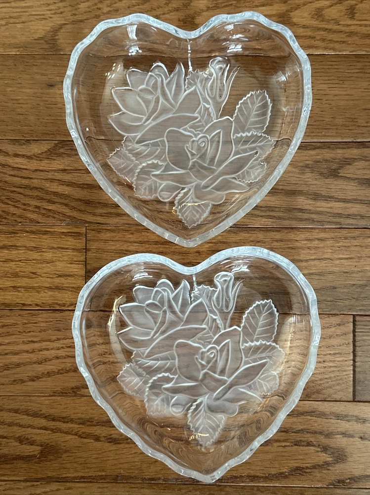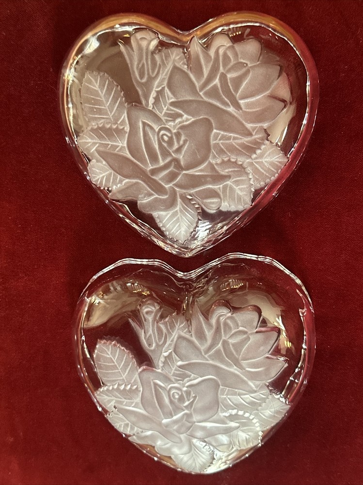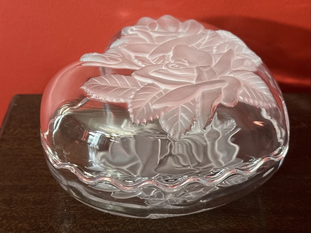 Mikasa Studio Nova Heart Trinket Candy Dish W/Lid Glass Frosted Roses NEW NEW without tags 6” x 5-1/2” Height 3-1/4” tall THANK YOU for looking!