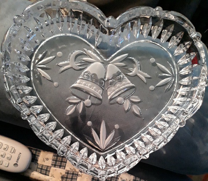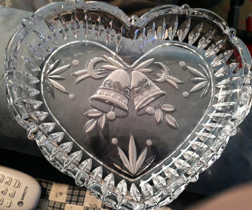 This Mikasa -Studio Nova Heart Shaped Frosted Bells Bowl-Dish is the perfect addition to your holiday table. The dish is 9 inches in diameter and features a classic frosted bells pattern. The heart-shaped design adds a touch of whimsy to the festive occasion. Made by Studio Nova, this dish is sure to impress your guests with its quality and style. Ideal for serving desserts or other small dishes, this bowl is a must-have for any pottery and glass collector.