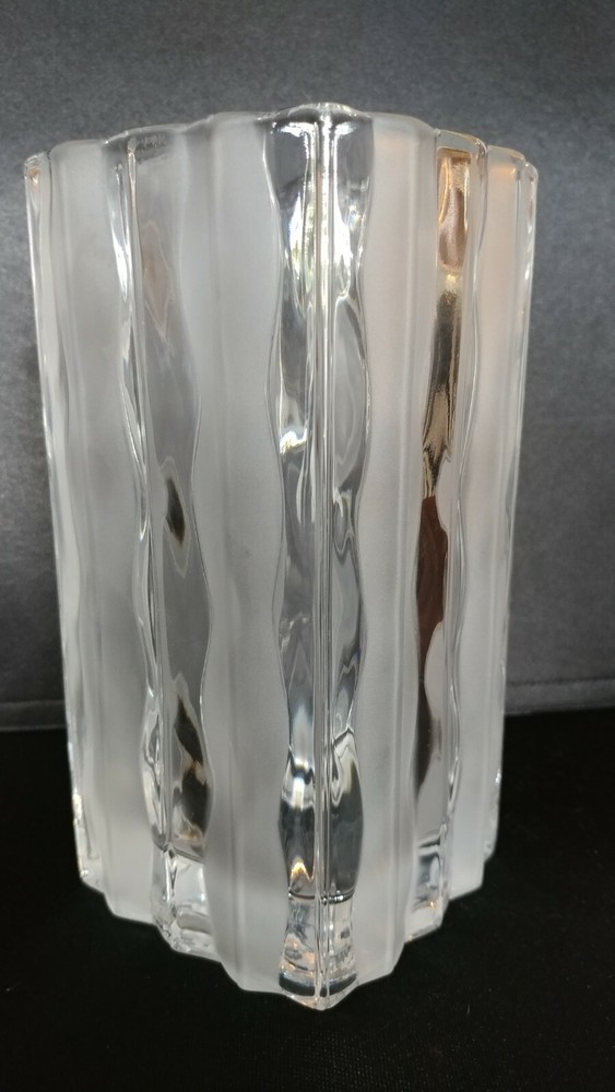 Mikasa Studio Nova Square Crystal Vase. This is a lovely contemporary, heavy vase with mixed clear and frosted crystal, 6-1/2" tall and 3-1/2" square, signed. Excellent preowned condition....