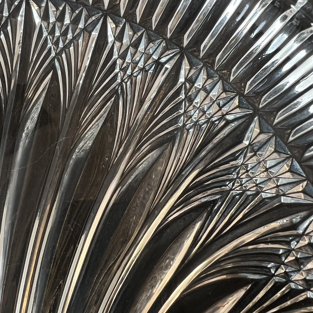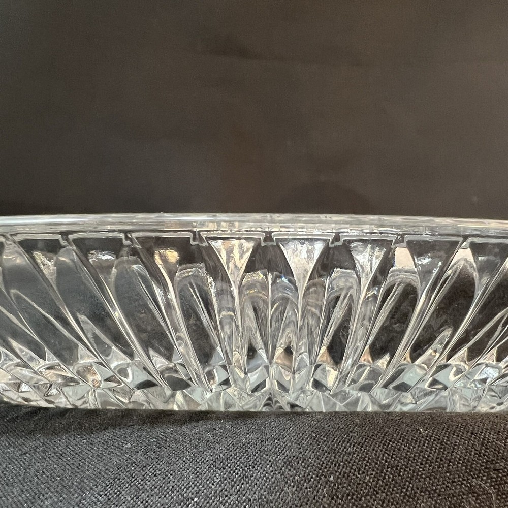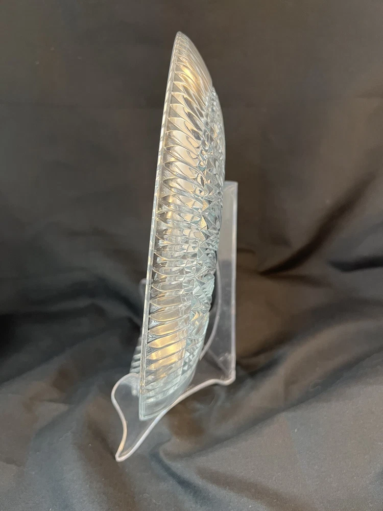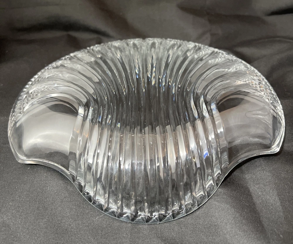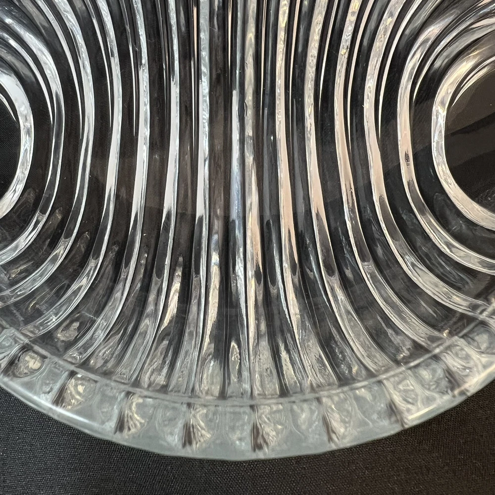 This stunning Studio Nova Pearl Surprise crystal serving platter is a must-have for any collector or lover of art deco design. Made in Japan by Mikasa, this round platter features a beautiful shell shape and a glossy finish. The clear crystal material adds a touch of elegance to any table setting and is perfect for serving your favorite dishes. The shell design creates a handle so this tray can comfortably be used for passed hors d'oeuvres. With a diameter of 10.5 inches and a weight of 2 pounds and 7 ounces, this platter is both functional and stylish. The Art Deco shell design and Studio Nova Pearl Surprise production line make it a unique addition to any collection. This platter is perfect for serving guests or as a special gift. Excellent condition. No chips cracks scratches.