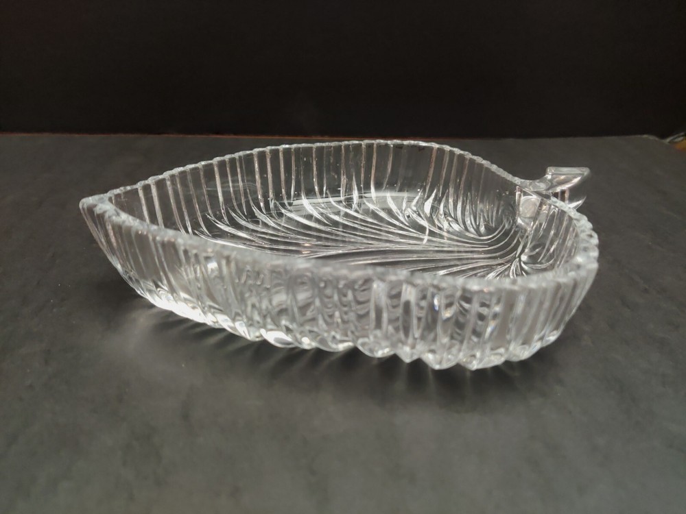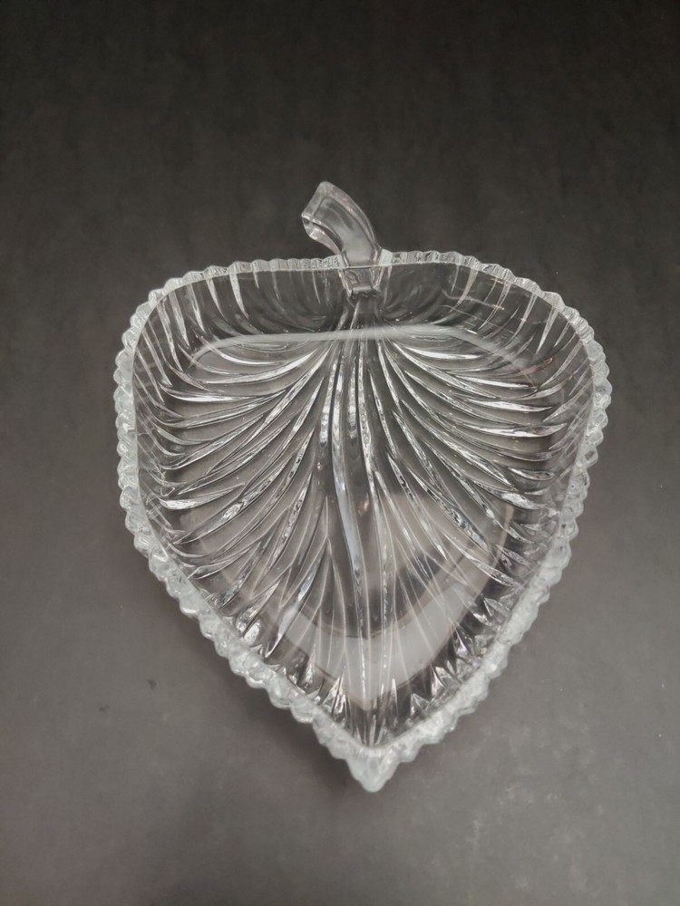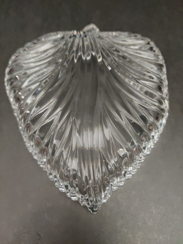 Studio Nova Summer Leaf Crystal Tray. Gently used and in excellent condition. Great gift idea. No chips, cracks or damage. 7.5" long. 5.75" Wide. 1.5" deep.