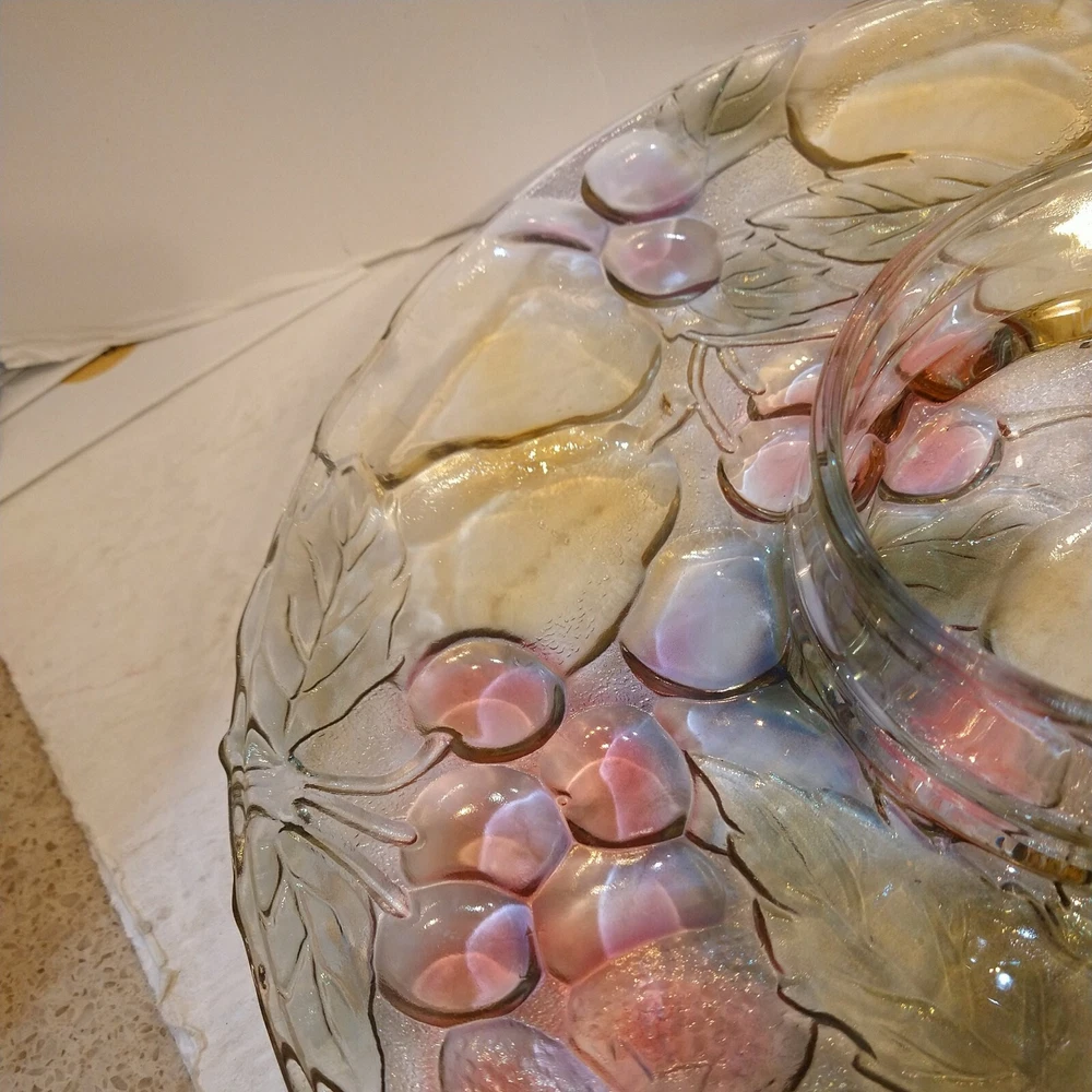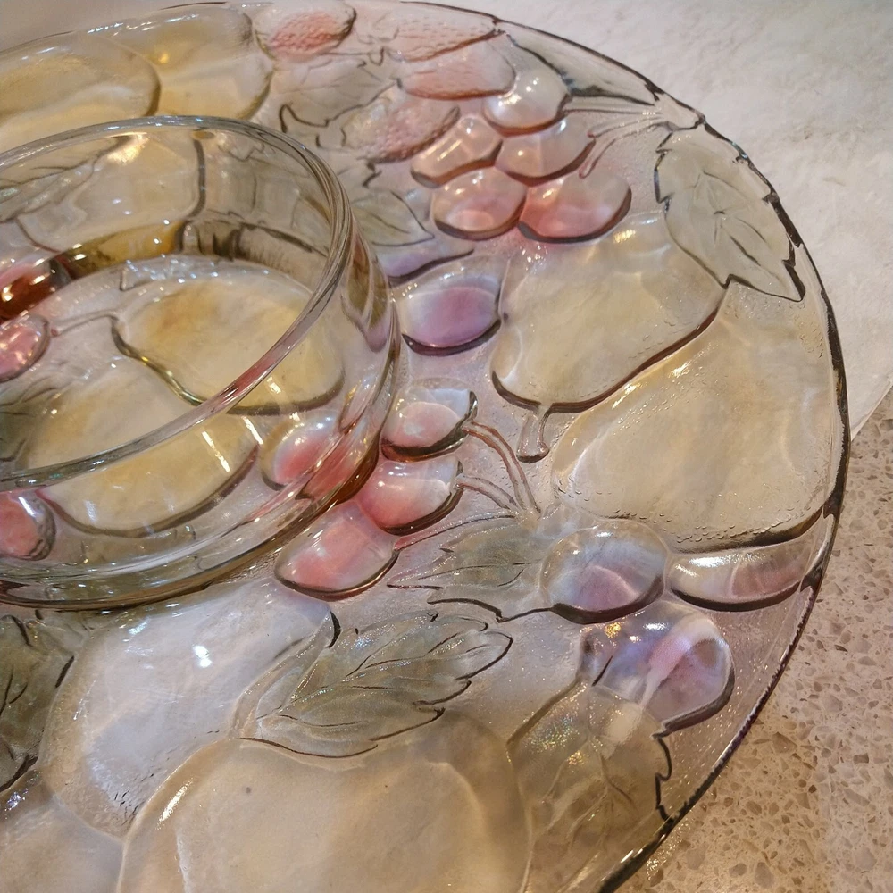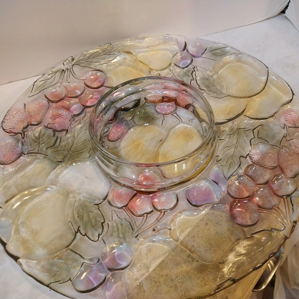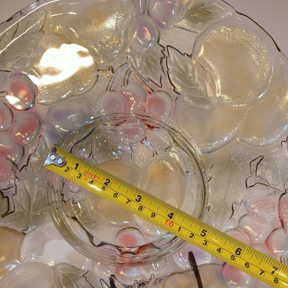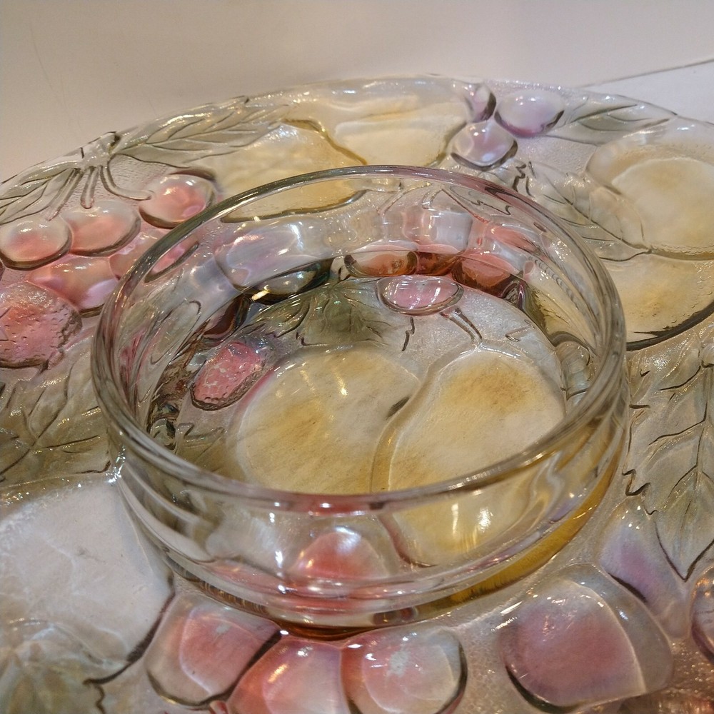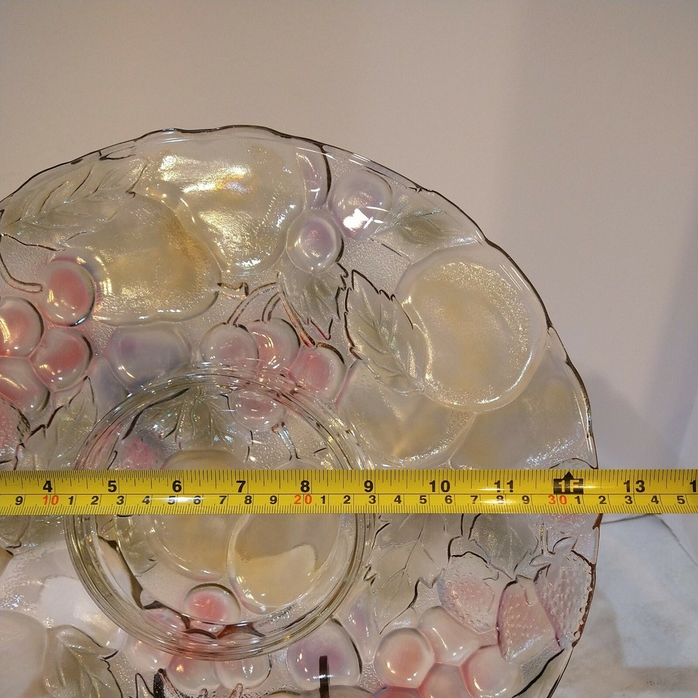 Mikasa Chip/Dip Glass Fruit Embossed Large 13" Serving Tray Platter One Piece. Condition is "New"...UNUSED..NEW..BEAUTIFUL EXCELLENT CONDITION ..WILL BE HEAVILY PACKED TO AVOID DAMAGE..SEE ALL PICS FO...