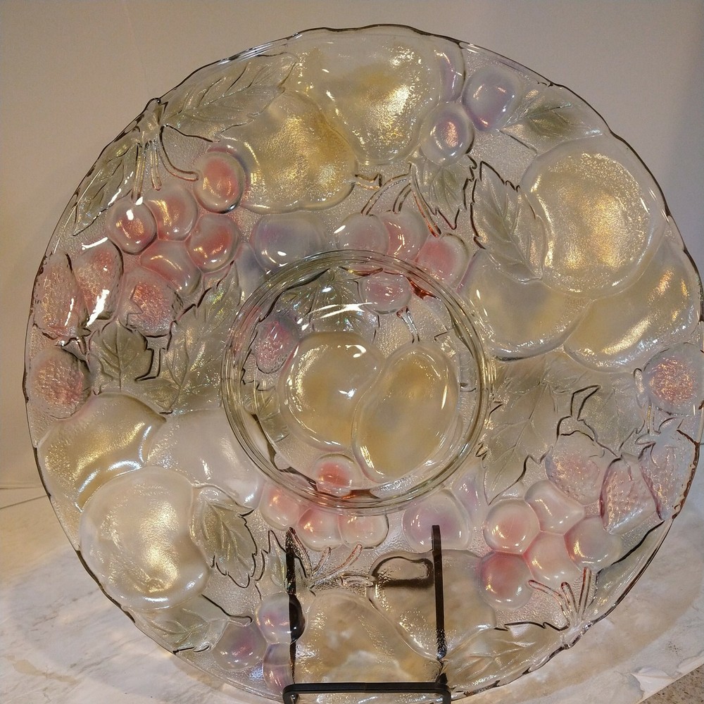 Mikasa Chip/Dip Glass Fruit Embossed Large 13" Serving Tray Platter One Piece. Condition is "New"...UNUSED..NEW..BEAUTIFUL EXCELLENT CONDITION ..WILL BE HEAVILY PACKED TO AVOID DAMAGE..SEE ALL PICS FOR DETAILS