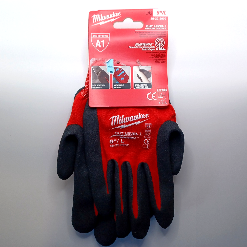 nitrile level 1 cut resistant dipped work gloves Milwaukee 48-22-8902 Large