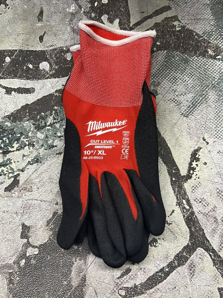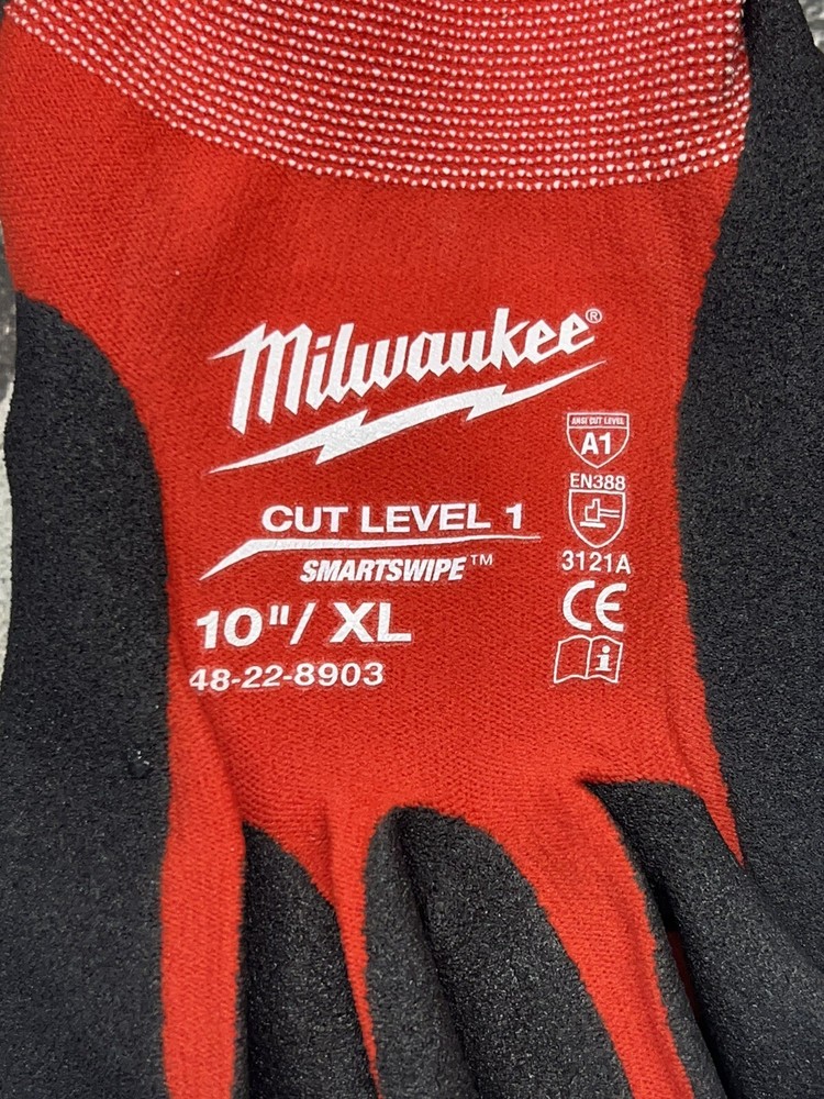 ~~ Milwaukee ~~ Cut Level 1 Dipped Gloves XL ⚫ 2 PAIRS ⚫ Model Number: 48-22-8903 ⚫ Milwaukee Tools dipped gloves are designed to provide ultimate durability, all day comfort, and best in class dexterity for handling small objects. SMARTSWIPE index fingertips provide full access to touchscreen devices without removing the gloves and the textured nitrile palm provides best in class grip performance. The gloves are made of a nylon and lycra blend to provide all day comfort and wick away moisture and also feature high dexterity fingertips to maximize control when handling small objects. ⚫ Features: SMARTSWIPE Index Finger permits use of touch screen devices without removing gloves Textured nitrile palm for best in class grip performance Nylon/lycra blend provides all day comfort High dexterity design when handling small objects Sandy grip finish ANSI & EN cut rating 1 TDM cut rating A Abrasion rating 3 Tear rating 2 Puncture rating 1 Breathable glove design Ideal use for material handling and general purpose remodeling applications ⚫ Specifications: Washer Regular cycle, Warm wash, Cool rinse Dryer Tumble dry, Low heat ⚫Includes: (2) Pair Milwaukee 48-22-8903 Cut Level 1 Dipped Gloves XL ⚫ CONDITION: NEW, NEVER USED ⚫ ~~Free Shipping.~~ __________________________ __________________ ⭐ SHIPPED WITH USPS FIRST CLASS & PRIORITY CLASS. ⭐ I HAVE THIS ITEM IN STOCK AND READY TO SHIP. ⭐ I WILL SHIP YOUR ITEM ON THE PURCHASE DAY OR BY THE VERY NEXT DAY. ⭐ A RESTOCK FEE OF 10%-20% MAY BE CHARGED FOR RETURNS THAT ARE NOT OF FAULT OF THE SELLER OR ITEMS NOT RETURNED IN THE SAME CONDITION. ⭐ I WILL PACKAGE YOUR ORDER WITH CARE ❤ TO ENSURE SAFE TRANSPORT AND DELIVERY! THANK YOU