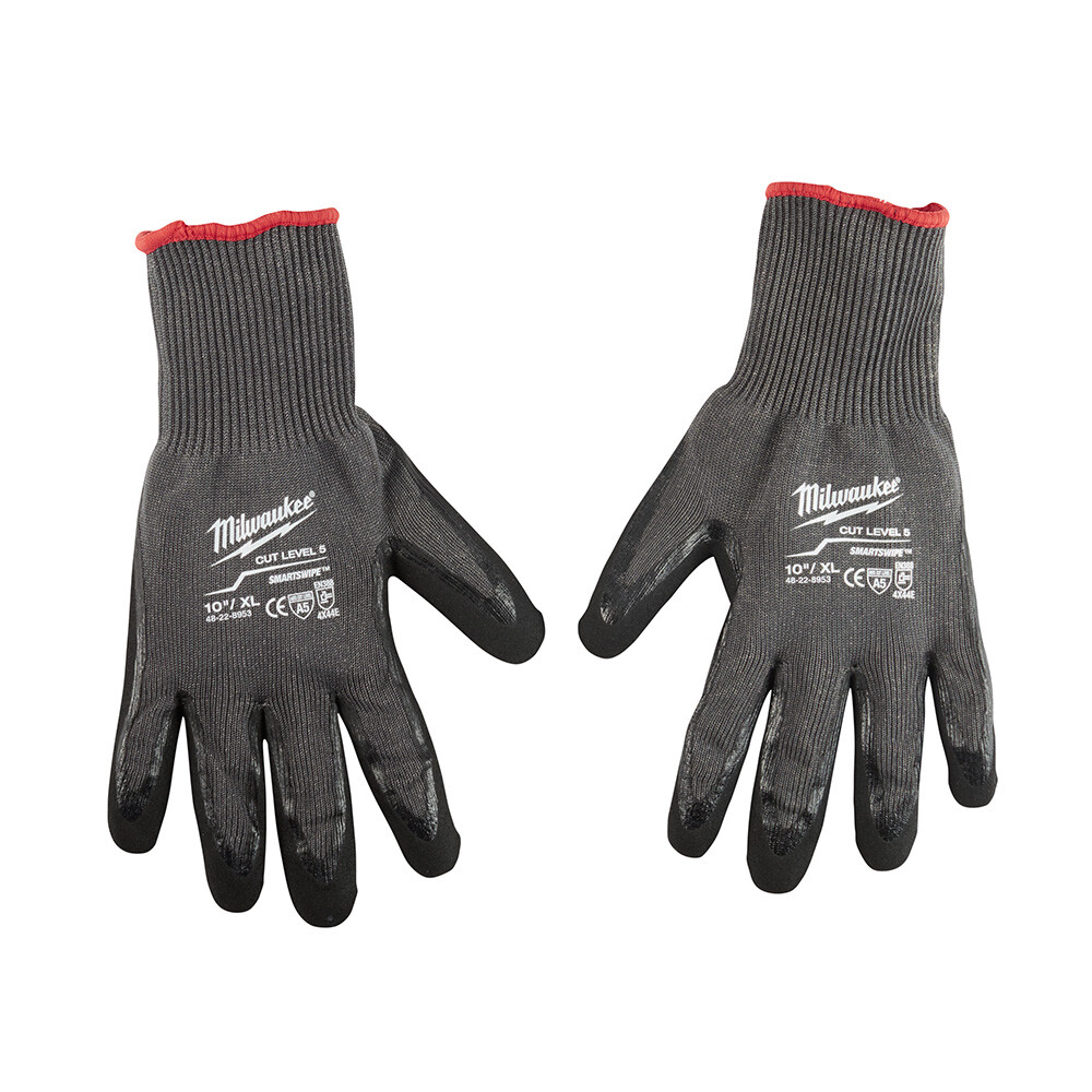 This is a GENUINE Milwaukee product NEW never used and will ship FREE in original factory packaging. Listing is only for the single XL pair as pictured. Product Overview Milwaukee Tools cut resistant dipped gloves are designed to provide ultimate durability, all day comfort and best in class dexterity for handling small objects. These gloves feature ANSI and EN cut level V protection to help prevent injuries from sharp objects on the jobsite. Additionally, Milwaukee gloves utilize a double dipped nitrile grip to provide best in class protection from puncture and a dual layer for added durability. SMARTSWIPE fingertips and palms provide full access to touchscreen devices without removing the gloves and also feature high dexterity fingertips to maximize control when handling small objects. ANSI 5 Double dipped nitrile grip for best in class protection and durability SMARTSWIPE palm and fingertips permits the use of touch screen devices without removing gloves Best in class puncture rating for resistance to sharp materials High dexterity design when handling small objects Nylon and HPPE liner material Double dipped nitrile with sandy texture finish TDM cut rating E Abrasion rating 4 Tear rating 4 Puncture rating 4 Breathable glove design Ideal use for sheet metal, ducting and glass handling applications Shipper chosen, FedEx/USPS/UPS is at my discretion due to various locations My eBay Return Policy: Please return item in same condition as it was received, same packaging whenever possible please, not used, cleaned or altered in any way. Surcharges may apply to Hawaii, Alaska and Puerto Rico - PLEASE contact me PRIOR to purchasing for shipping surcharges may apply and I will possibly cancel the sale if not paid