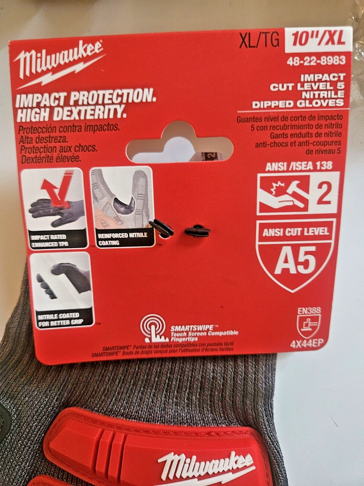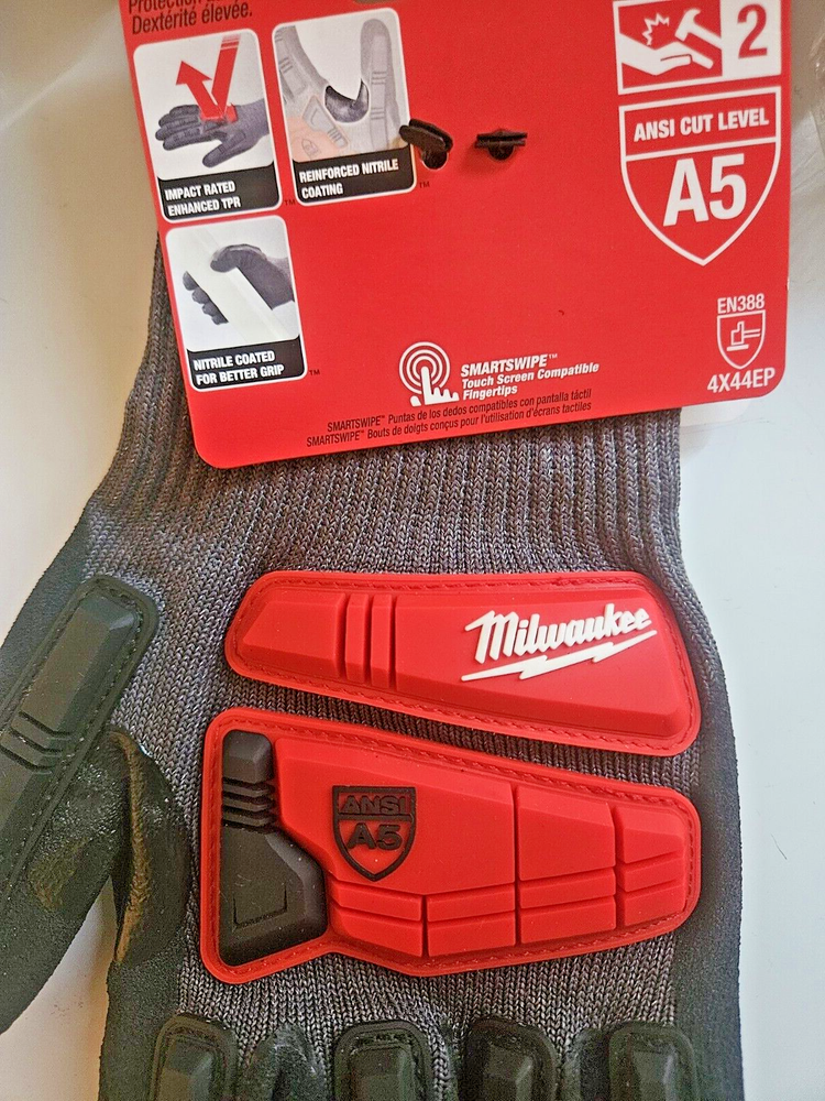 Upgrade your work gloves with these Milwaukee 48-22-8983 Nitrile Dipped Impact Lvl2/Cut Resistant A5 Gloves. Made with high-quality nitrile rubber, these gloves are designed to provide maximum protection against workplace hazards. The gloves are available in XL+ size, making them perfect for users with larger hands. The gloves are ideal for use in various industries, including construction, manufacturing, and healthcare. They are also suitable for personal protective equipment (PPE) needs and facility maintenance and safety. Order now to stay protected and comfortable while on the job.