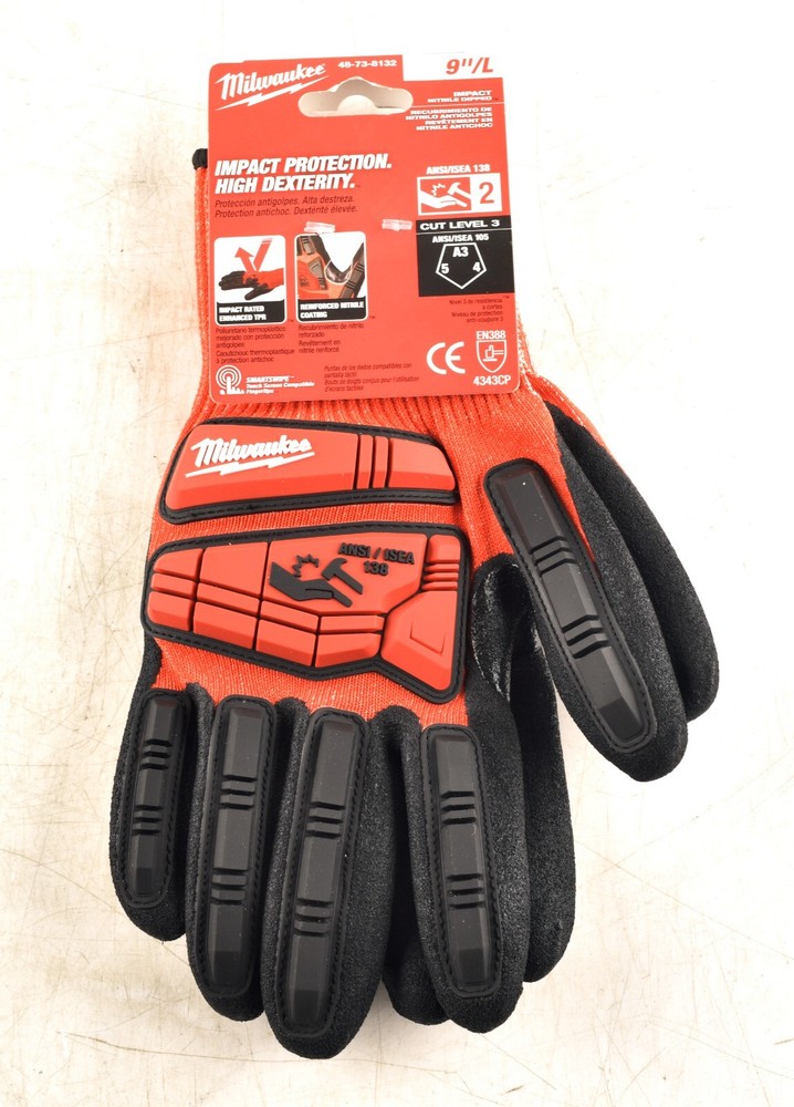 Milwaukee 48-73-8132 Impact High Dexterity Cut 3 Nitrile Dip Glove 9" L New Please refer to photos to access Items Condition Shipping Policy • If you are International Buyer - contact us before buying Payment Policy • Item will be shipped immediately on the same or next business day of receiving full payment Return Policy • Items Condition is clearly stated in the description • Actual Images of item are shown • Returns ACCEPTED FOR 7 DAYS, BUT THE BUYER IS RESPONSIBLE FOR RETURN SHIPPING If you have any problems or questions - contact us right away and we will do our best to resolve the problem. Massages are answered from 9:00 AM to 5:00 PM EST Monday through Saturdays Good Luck and Happy Buying *BSC