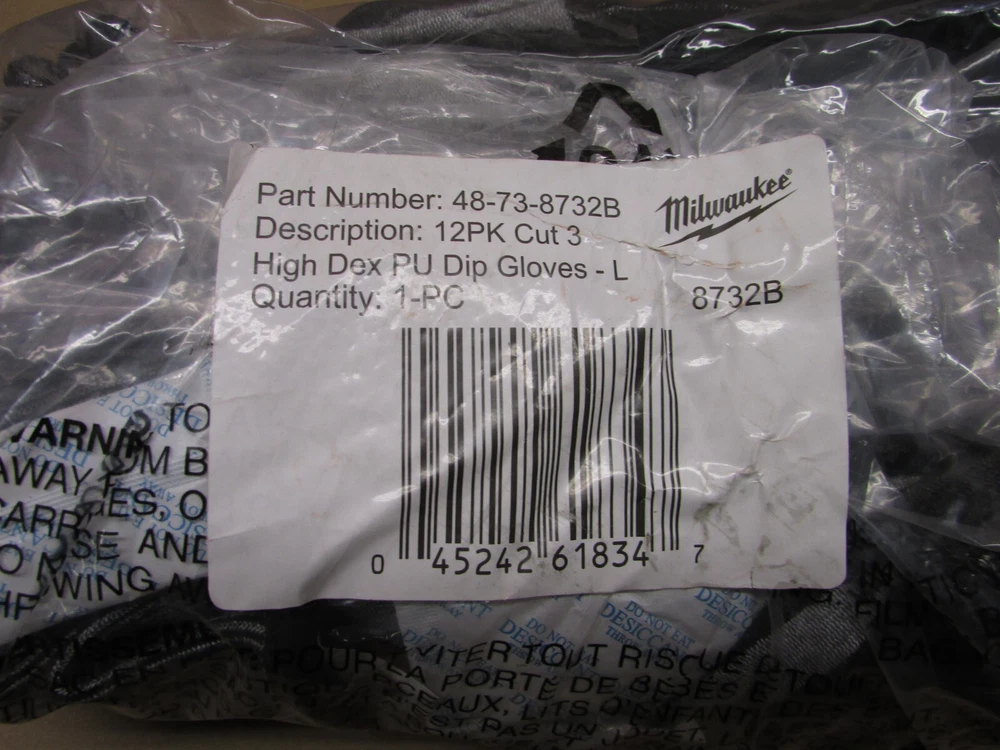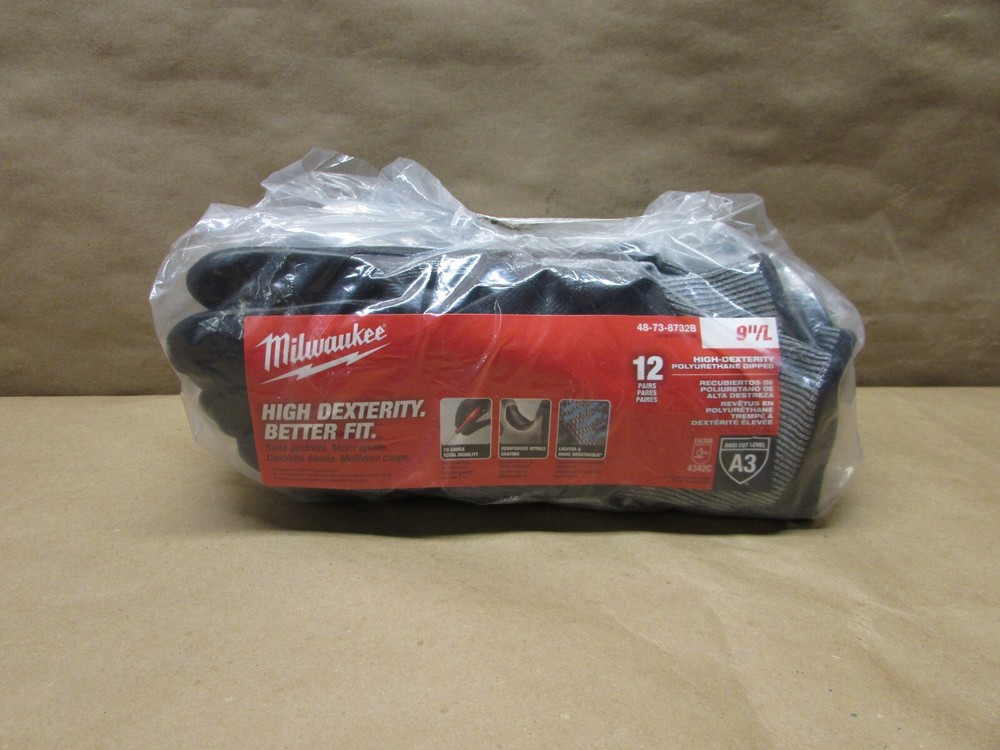 You will receive 12 pairs of Milwaukee 48-73-8732 High Dexterity Cut Level 3 Polyurethane Dipped Gloves Size: Large. The MILWAUKEE High-Dexterity Cut Level 3 Polyurethane Dipped Gloves allow our users to maintain high dexterity while also providing a better fit. These cut-resistant gloves are made of an 18 gauge knit for total mobility. The gloves also have a reinforced nitrile coating between the thumb and index finger for enhanced durability in high wear points. The polyurethane dip makes the glove feel lighter and more breathable while working. MILWAUKEE SMARTSWIPE fingertips provide you with full access to your touchscreen devices without removing the gloves. MILWAUKEE High-Dexterity Gloves feature a color-coded wrist band for easy cut level identification. Cut Level 3 High Dexterity Polyurethane Dipped Gloves : Milwaukee Tool 18 Gauge - Total Mobility Reinforced Nitrile Coating Between Thumb and Index Finger Lighter and More Breathable ANSI Cut Level 3 EN 388 - 4342C SMARTSWIPE Touchscreen Compatible Fingertips High dexterity design when handling small objects Breathable glove design High Performance Polyethylene is knit into the gloves for cut protection Color-coded band for easy cut level identification. Before you buy, please check my Feedbacks!!! You are buying from trusted seller!!!!!! New – Never Used. Pictures are of actual item for sale, please review closely and let me know of any questions you may have. If you are looking for further details, you might want to check the manufacturer or publisher website. Their sites frequently contain details about an item’s specification such as physical dimensions, size, weight, included accessories, format, edition, version, color, etc. Additionally, we are not able provide technical, warranty support, or confirm if an item is compatible. We are not authorized Sellers/Dealers/Retailers of any of the products/merchandise we list/sell. We will ship using UPS or USPS, according to our criteria in each case. A tracking number is automatically emailed when the order is processed. UPS does not deliver in a PO Boxes, make sure to include a physical address. This item can only be shipped to the US (the lower 48 only) We are not able to ship products to Hawaii, Alaska, Puerto Rico, the US Virgin Islands or Mariana Islands. We will only ship to the address defined in your eBay account. We are not able to ship to international addresses. Shipping is MON thru FRI, except for all Federal Holidays. We do SAME DAY SHIPPING on confirmed addresses by 11:00 a.m. CST. During checkout, before you enter your payment information, eBay will give you the chance to select the shipping address. Please make sure to choose correctly, as it cannot be changed, once its selected. Thanks for your business. 597-BQ10-025