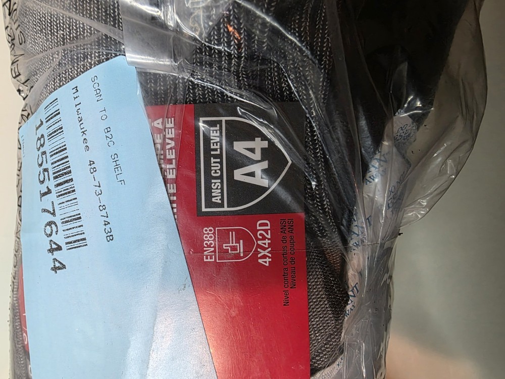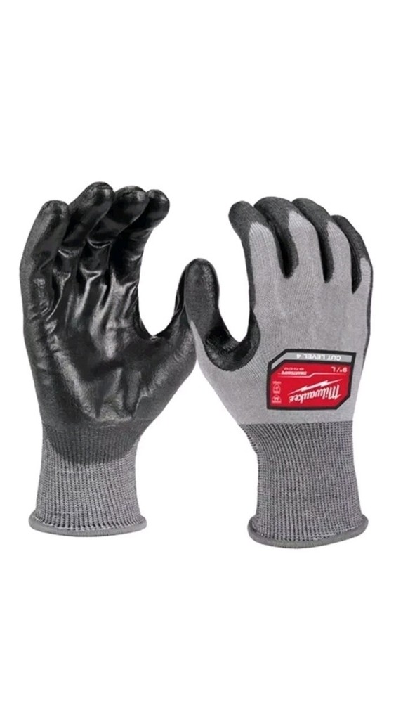 Milwaukee 48-73-8743B 12 PACK Cut Level 4 High-Dexterity Polyurethane Dipped - XL Our High-Dexterity ANSI/ISEA 105-2016 Cut Level 4 Polyurethane Dipped Gloves allow our users to maintain high dexterity while also providing a better fit. These cut-resistant gloves are made of an 18 gauge knit for total mobility. The gloves also have a reinforced nitrile coating between the thumb and index finger for enhanced durability in high wear points. The polyurethane dip makes the glove feel lighter and more breathable while working. MILWAUKEE® SMARTSWIPE™ fingertips provide you with full access to your touchscreen devices without removing the gloves. MILWAUKEE® High-Dexterity Gloves feature a color-coded wrist band for easy cut level identification
