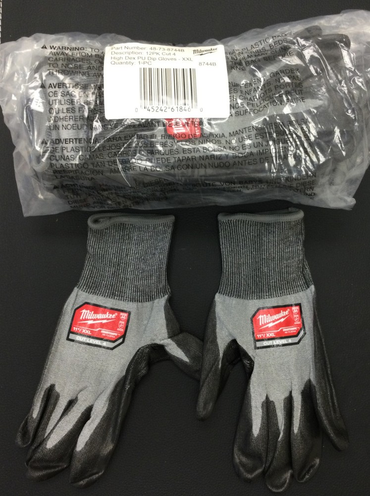 Milwaukee 48-73-8744B Cut 4 High Dexterity PU Dip Gloves XXL 12Pk (New).