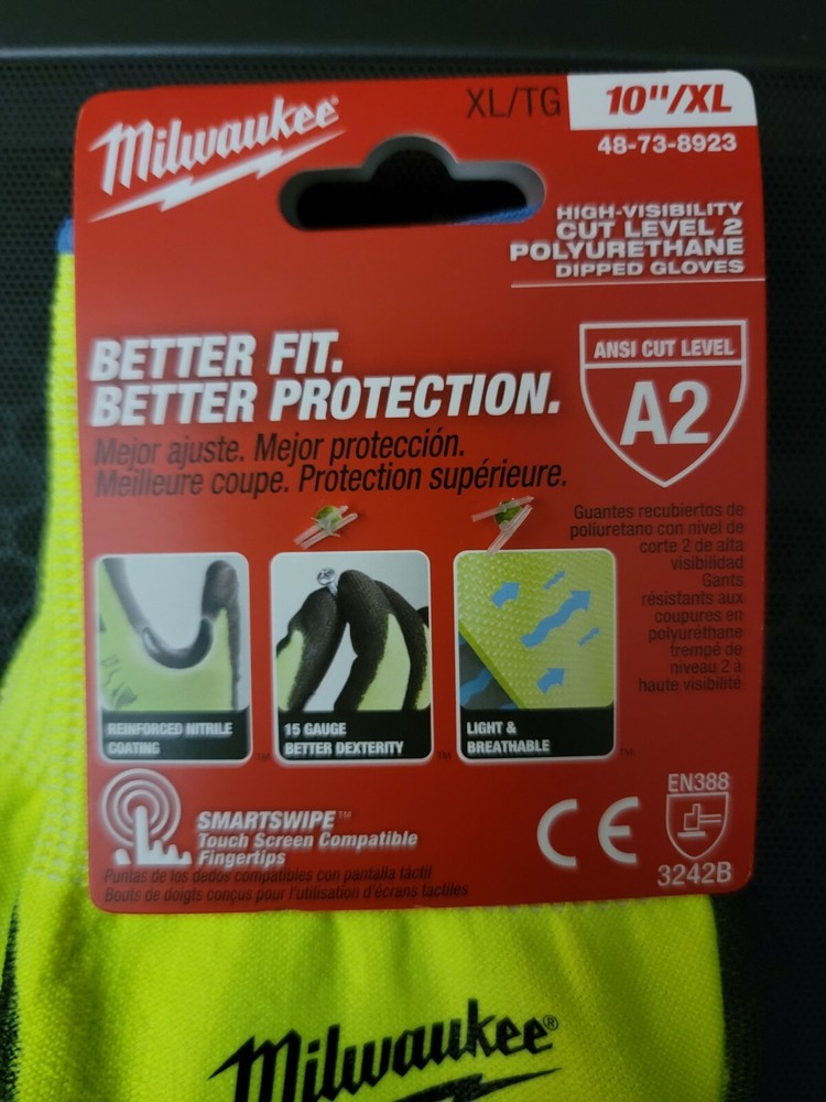 Milwaukee 48-73-8923 Hi-Vis Cut Level 2 Polyurethane Dipped Gloves - X-Large....