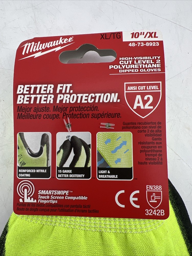 Milwaukee Gloves XL High-Visibility Cut Level 2 Polyurethane Dipped 48-73-8923...