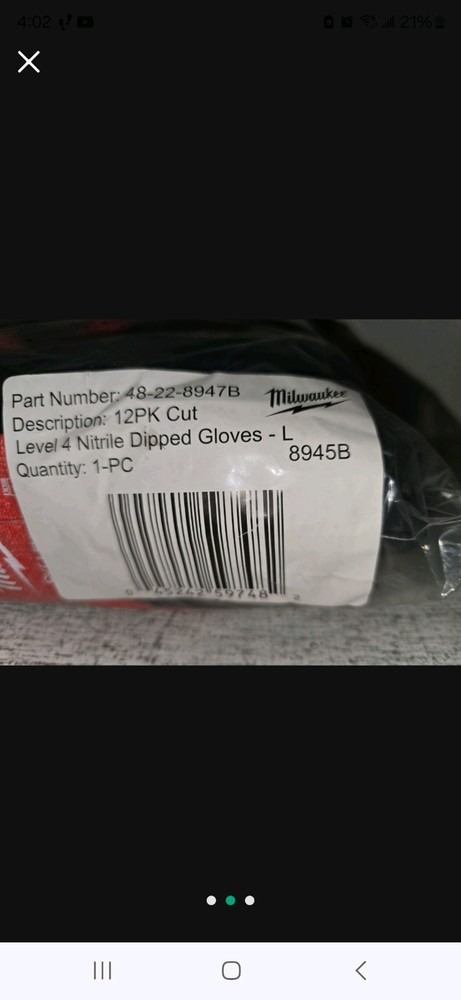Milwaukee Tool 48-22-8947B Cut Level 4 Nitrile Dipped Gloves - Large (12