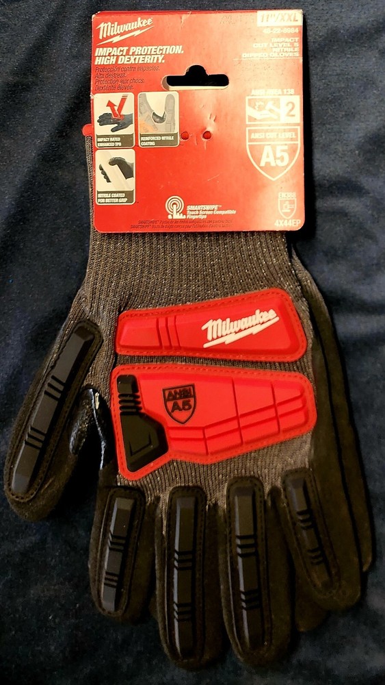 Upgrade your safety gear with these Milwaukee Tool 48-22-8983 Impact Cut Level 5 Nitrile Dipped Gloves. Designed for maximum protection, these gloves are perfect for handling heavy-duty tools and machinery. The nitrile material ensures durability and resistance to punctures, while the dipped design provides added grip and comfort. With a size of X Large, these gloves are perfect for both men and women. The Milwaukee brand is synonymous with quality and reliability, making these gloves a must-have for any serious professional. Whether you're in construction, landscaping, or facility maintenance, these gloves will provide the protection you need to stay safe on the job. BUY WITH CONFIDENCE AS YOUR SATISFACTION IS GUARANTEED. PLEASE SEE OUR OTHER LISTINGS.