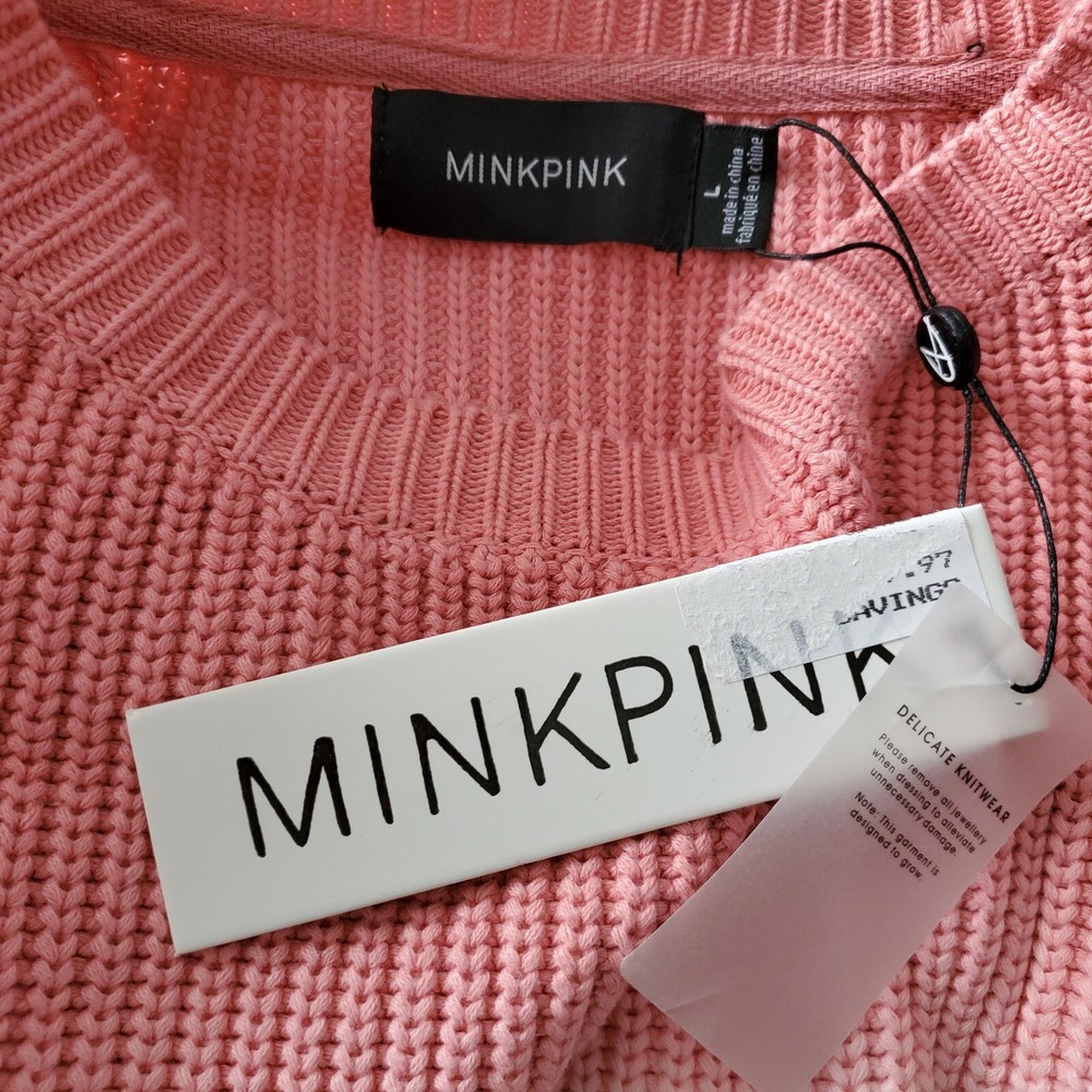 MinkPink Dip Dye Blue Pink Crop Sweater Size L. Condition is "New with tags". Shipped with USPS First Class....