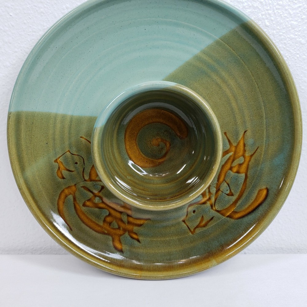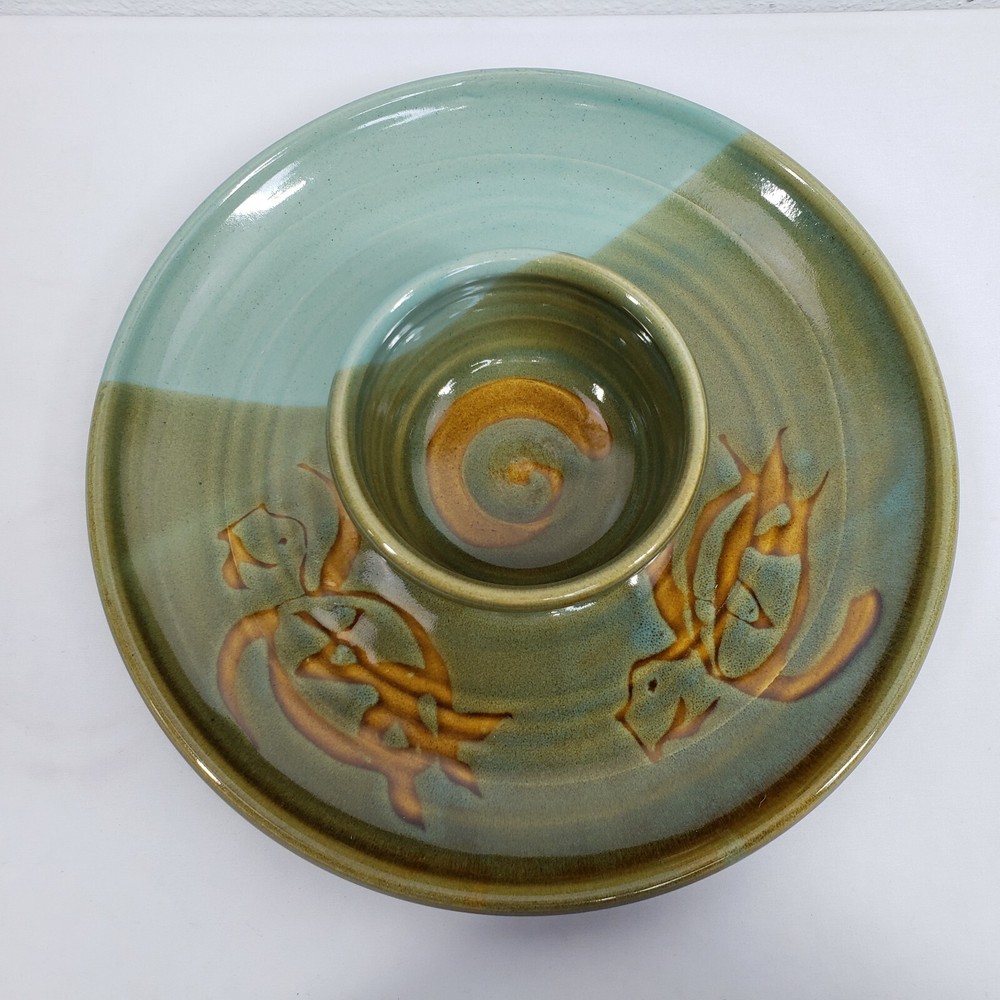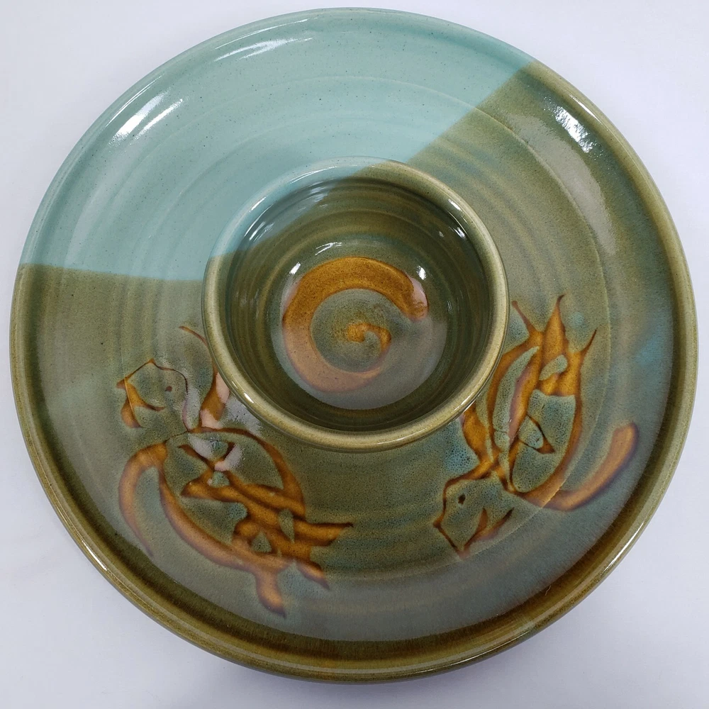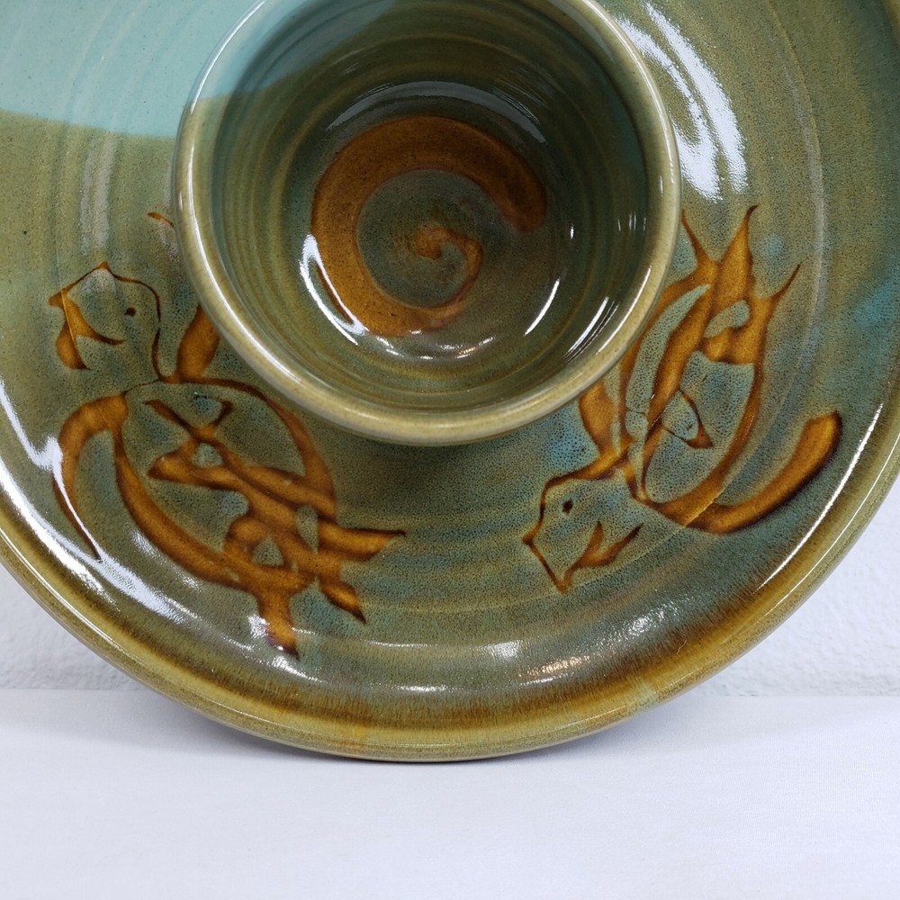 Mississippi Mud Pottery Clay Drip Glaze Large Chip Dip Turtles Green Illinois