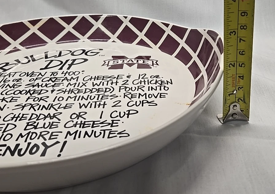This baking dish is a game-changer for any Mississippi State fan! The perfect size for dips, casseroles, or desserts, it looks fantastic with its vibrant maroon and white design. Super durable and easy to clean—just toss it in the dishwasher. The included Bulldog Dip recipe is a fun bonus. Great for tailgates, potlucks, or gameday at home. A must-have for any true Bulldogs supporter!