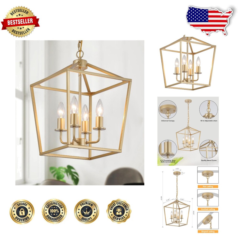 Modern Industrial Gold Chandelier for Kitchen Island & Entryway – 66.93'' Height ‹ › ‹ › ‹ › ‹ › ‹ › ‹ › ‹ › ‹ › ‹ › ‹ › ‹ › Modern Industrial Elevate Your Space Transform your home with this stunning Modern Industrial , designed to infuse elegance and charm into any room. Perfect Design Crafted from durable wrought iron with a brushed luxury finish that gleams in gorgeous gold. Featuring four elegant candle holders that create an enchanting ambiance. Unique blend of luxurious and industrial vibes, making it a stunning centerpiece in your home. Easy to Assemble Designed for effortless installation, complete with a detailed instruction manual. Adjustable chain allows you to customize the height to your preference, accommodating sloped, flat, or vaulted ceilings. Widely Used Perfect for dining rooms, kitchens, island bars, living rooms, entryways, and more. Adds a rustic yet chic touch to balconies, corridors, stairwells, bathrooms, and offices. Creates a charming ambiance in any space, making it an ideal fixture for farmhouse-style decor. Lighting Parameters Dimensions: Adjustable height of 66.93" | Width: 11.81" | Length: 16.93". Compatible with four E12 LED bulbs (not included), providing ample lighting. Commitment to Quality Our light fixtures comply with UL standards, ensuring safety and durability. With a 3-year product maintenance guarantee and 24/7 online support, we're here to assist you with any inquiries. Why Choose Our Gold Lantern Chandelier? Elevate your home decor with a unique blend of industrial and luxurious design. This exceptional chandelier not only enhances the aesthetic of your space but also illuminates it beautifully. Make your purchase today and create a warm, inviting atmosphere with our Modern Industrial ! Shipping Free & Fast Shipping - We offer free shipping to most of the USA with a normal delivery time of 3-7 days. However, due to the current situation, additional delivery time (up to 3 weeks) may be required for some items. Alternative Carriers - We may use alternative carriers (e.g. USPS, FedEx, UPS, etc.) to ensure your package arrives safely and on time. Due to the use of multiple carriers, we are unable to provide a tracking number automatically. Handling Time - Orders are processed and shipped within 1-2 business days of receiving cleared payment. Shipping Restrictions - Shipping to Alaska, Hawaii, Puerto Rico, Guam, and other US territories may incur shipping charges or delivery restrictions. Please contact us before ordering, or your order can be refunded/cancelled. State Restrictions - There may be restrictions based on your state of purchase. For example, certain items may not be shipped to California due to state regulations. Contact for Tracking Updates - If you require tracking updates or have any concerns about the delivery of your order, please feel free to contact us, and we will be happy to assist you. Return 30-Day Hassle-Free Returns - We want you to be completely satisfied with your purchase. If you are not, you can return the item within 30 days of receiving it for a full refund or exchange. Easy Return Process - To start a return, simply contact us and we will provide you with a prepaid return shipping label and detailed instructions. Restocking Fee - There are no restocking fees for returns. However, the buyer is responsible for return shipping costs if the return is not due to a seller's error. Refund Processing Time - Refunds will be processed within 5 business days of receiving the returned item in its original condition. Payment We accept all major credit cards, PayPal, and Apple Pay for your convenience. Your payment information is secure and encrypted to ensure a safe and seamless transaction. Please complete your payment within 3 days of purchase to avoid any delays in shipping. Feedback Your feedback is extremely important to us. We strive to provide the best products and customer service possible. If you are satisfied with your purchase, please take a moment to leave us a positive review. If you have any concerns or issues with your order, please contact us before leaving negative feedback. We are committed to resolving any problems and ensuring your satisfaction. Contact Us If you have any questions or concerns, please feel free to reach out to our customer support team. You can contact us through the eBay messaging system. We are available Monday to Friday, 9:00 am to 5:00 pm EST, and we will do our best to respond to your inquiry within 24 hours. Buy it now and enjoy a pleasant shopping experience! UPC: Not Set Lumens: Not specified Power Consumption: 40 watts Item Height: Not Set Item Length: Not Set Item Weight: 5 pounds Item Width: Not Set Unit Quantity: 1 Material: Iron Room: Bar,Bedroom,Dining Room,Entryway,Foyer,Kitchen,Living Room,Porch,Balcony,Corridor,Loft,Staiwell,Craft Room,Hallway,Office Light Color: Warm Light Features: Adjustable Height Department: Unisex Baby & Toddler,Kids,Teens,Adults Control Style: Touch Occasion: Best Wishes,Casual Light Direction: Upwards Labels & Certifications: Not Set Brand: Unbranded Type: Chandelier Sensor Type: Not applicable Style: Modern Industrial Lighting Technology: LED Color: Gold Finish: Brushed Number of Settings: 1 Shade Shape: Lantern Power Source: AC Installation Area: Indoor Energy Star: Not Set LED String/Strip Type: Not applicable MPN: Not Set EC Range: Not Set Item Diameter: Not specified Manufacturer: Not Set Voltage: 110 volts Year Manufactured: Not Set Amperage: Not specified Country/Region of Manufacture: Not Set Number of Lights: 4 Output Voltage: Not specified IP Rating: Not specified Color Temperature: Not specified Era: Not specified LED Chip Code: Not applicable Manufacturer Warranty: Not Set Model: Not Set Product Line: Not Set Unit Type: Unit Assembly Required: Not Set