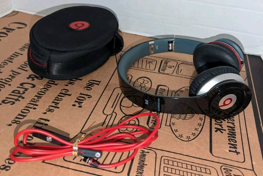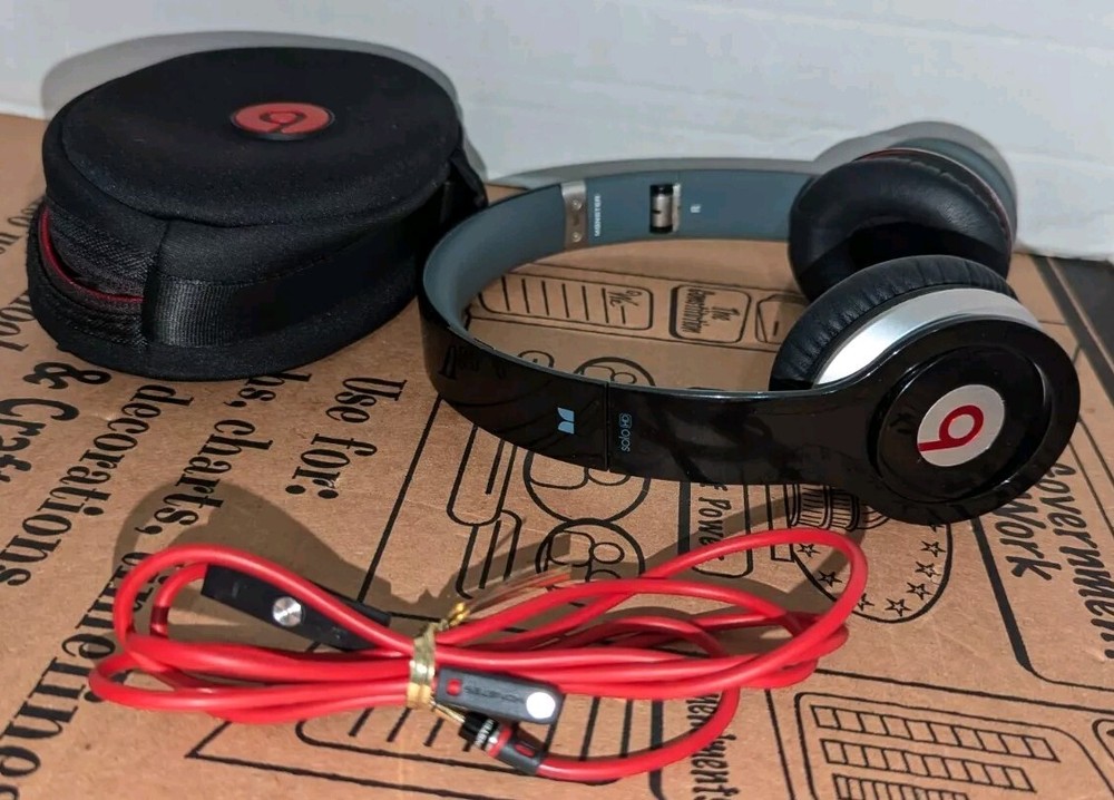 Experience high-quality sound with these Monster Beats by Dr. Dre Solo HD headphones. The headphones come in a sleek black color and have an adjustable headband for a comfortable fit. They also feature active noise cancellation and surround sound for an immersive audio experience. The headphones are wired and have a detachable cable, making them perfect for studio monitoring, DJing, and live monitoring. Additionally, they come with accessories such as original box, carrying case, wires, and accessories. The L-shape plug ensures a secure connection, and the headphones have in-line control for easy access to your music. Get ready to enjoy your favorite tunes with these amazing headphones! Comes with wire and case in good condition please see pictures 1Ring