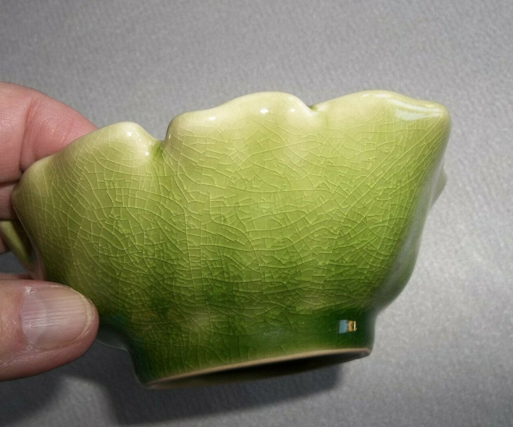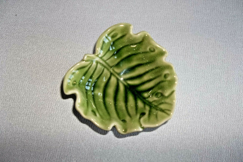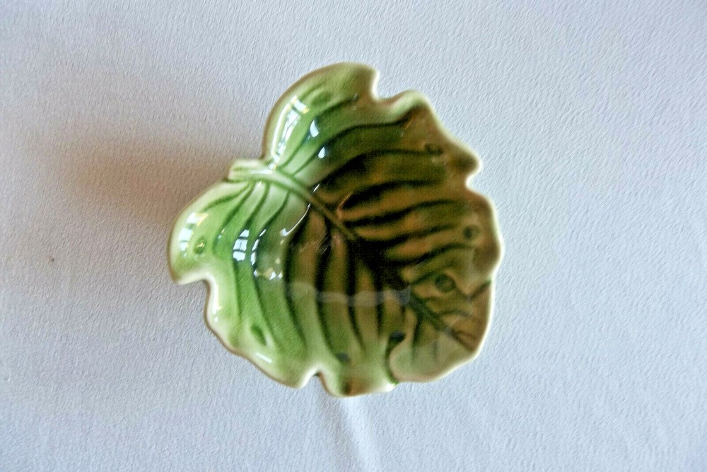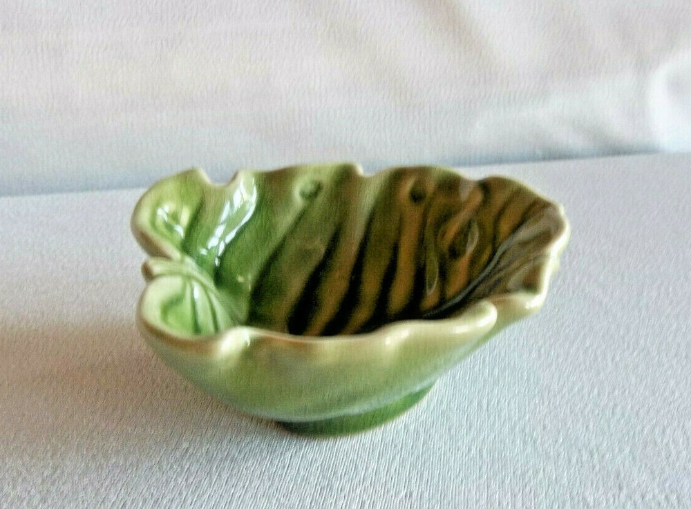 Monterey Collection Home Studio 4.5” x 4.25" Ceramic Green Leaf-Shaped Serving Bowl Crackled Art Pottery This is a beautiful pattern by Home Studio. This bowl is from the Monterey Collection; in the shape of a green tropical leaf with crackle glaze. It is dishwasher safe, and microwave and oven proof. It is in excellent used condition. The bowl is just right for nuts or candies; olives or relishes...or whatever works for you! From a non-smoking/no pet household. **** I'll gladly answer questions. Thanks a bunch for visiting. **** Shipping (usually same day) upon receipt of payment. The package will ship via USPS Ground Advantage.