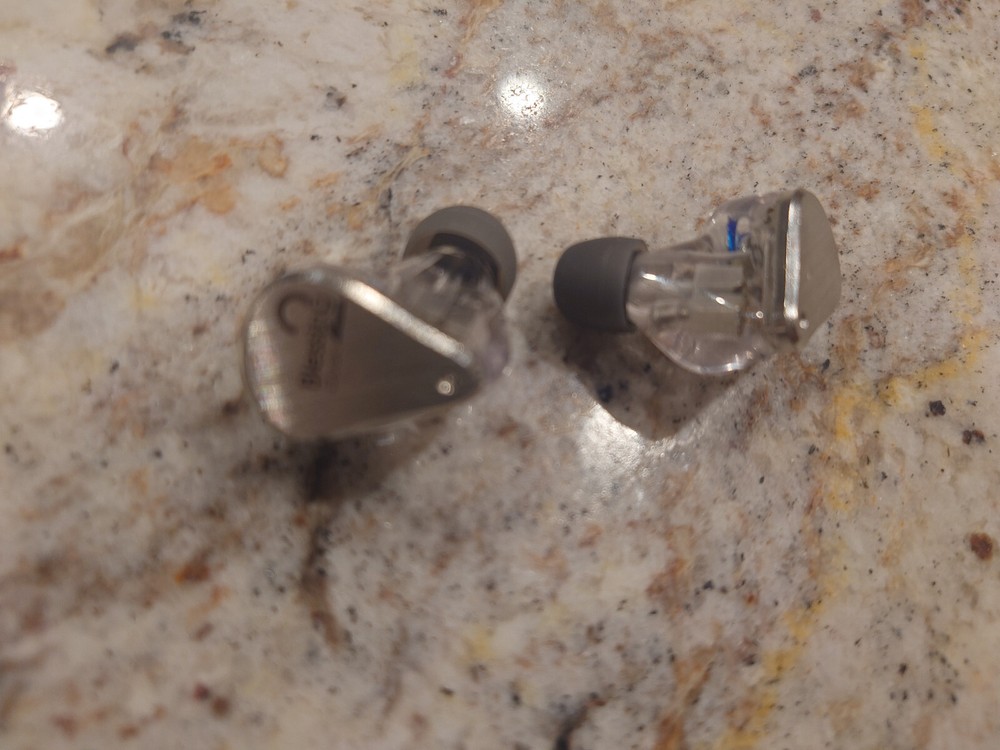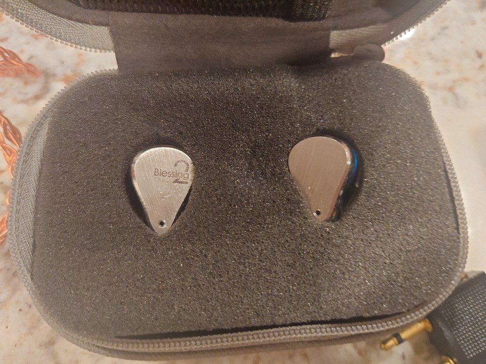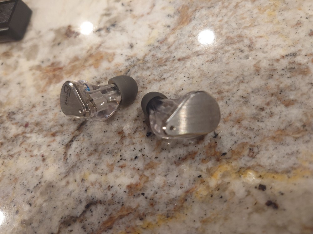 Moondrop Blessing 2 Dusk In Ear Professional Monitor Earbuds in original packaging. Some scratching on the earpieces. Includes the Hart Audio PC-3: Dual Angled 2-pin balanced modular IEM Cable and 3.5mm trrs interconnect.