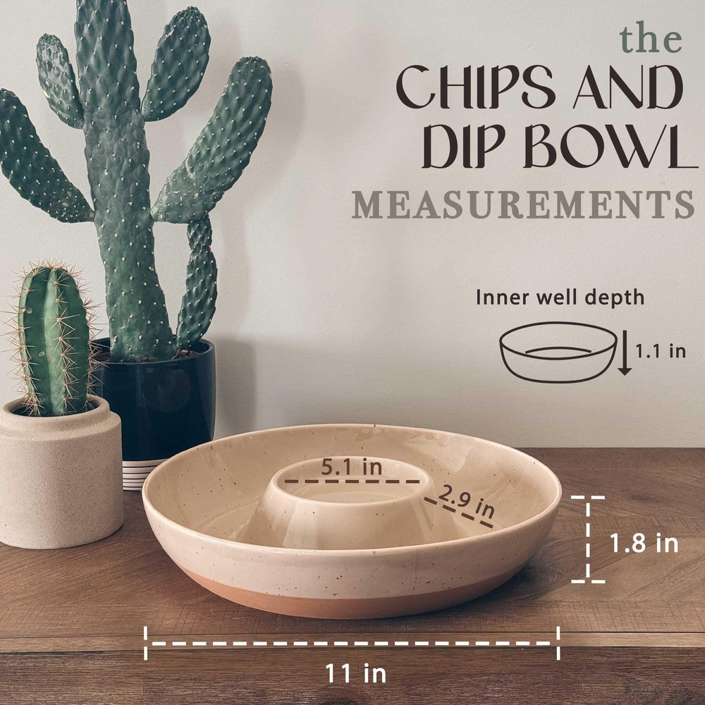 LETS HIT PAUSE AND ENTERTAIN: This is more than a serving bowl. Mora is Latin for "Pause", acting as a reminder to slow down your busy life. Having people over can be stressful, but we are here to elevate your chip and dip experience. Modern shapes and clean lines convey a sense of calm which comes through when we entertain. LEAD FREE ALL NATURAL GLAZE: We know that lead is a poison, but what some of us don't know is that it is in a lot of ceramic glazes, since there is no US regulation for lead in adult products. Unlike other ceramic companies, our glazes are lead free, meaning you will never have to worry about lead leaching into your system and making you sick. Since our glaze is all-natural, it tends to change color depending on the lighting. The color may be a tad different from what you see on your screen. ALL IN ONE DESIGN: We like convenience too! With a built in dipping bowl surrounded by a spacious serving bowl, we have made entertaining one step easier. Impress your guests with literally zero effort. As always, our bowls are always microwave, dishwasher, and oven safe. CERAMIC WITH 20% STRONGER PALADIN CLAY: Our clay was refined and fired with you in mind. Only we have Paladin Clay which is 20% stronger than the competitors, giving you a stronger and more durable ceramic bowl. This is where aesthetics meets durability. MORA’S PROMISE: We provide a free refund or replacement for any defective products, anytime. Just let us know what happened. We offer daily customer service because you are important to us. Our objective is to help you hit pause, so we won’t settle for anything you don’t love. We’re not happy unless you are.❤