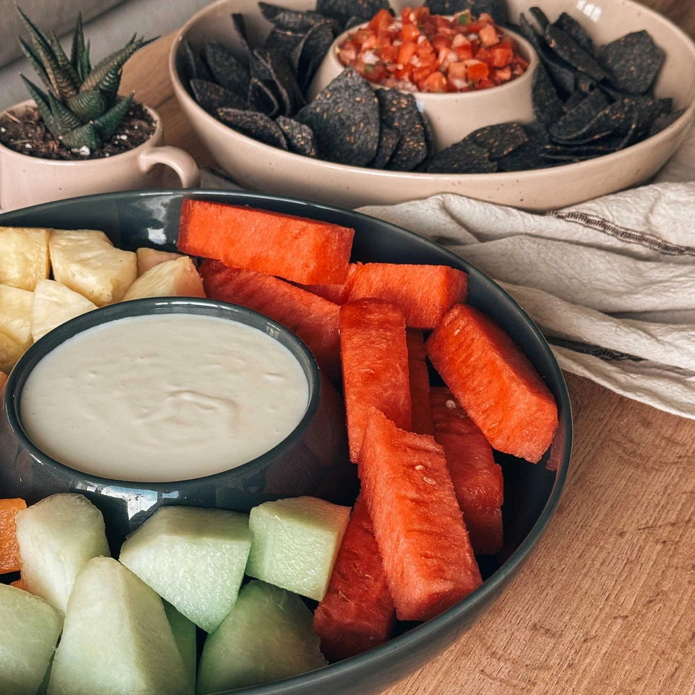 This stylish Mora tray is perfect for entertaining—its sleek, modern design adds elegance while keeping chips and dips neatly separated. The lead-free, natural glaze ensures safe serving, and the thoughtful "pause" concept encourages relaxing moments with friends. Durable, beautiful, and practical—it elevates any gathering effortlessly!