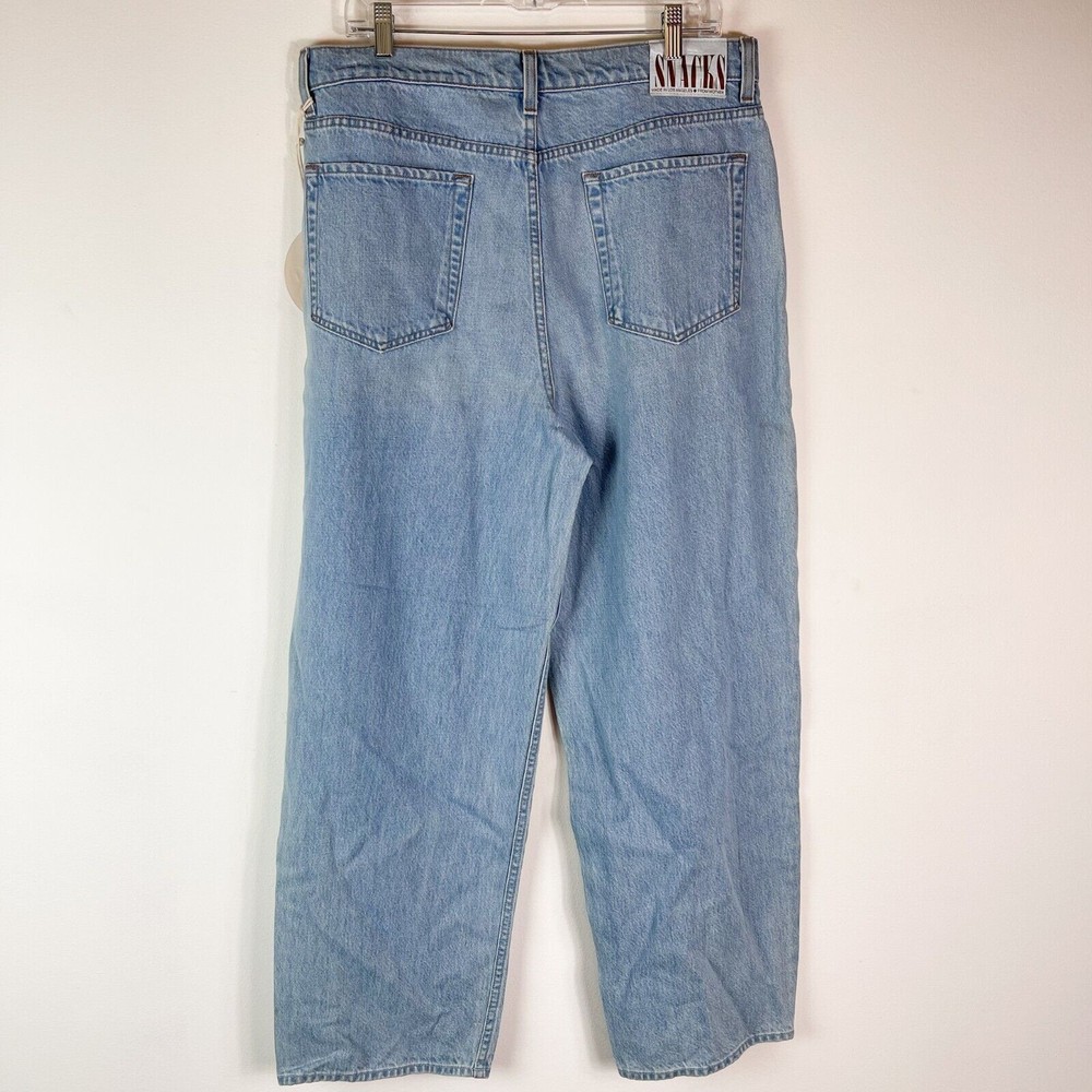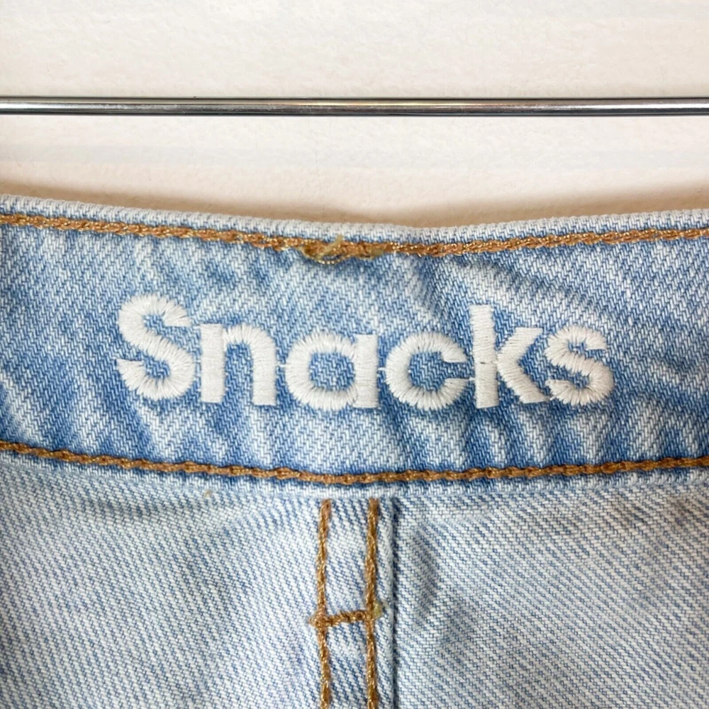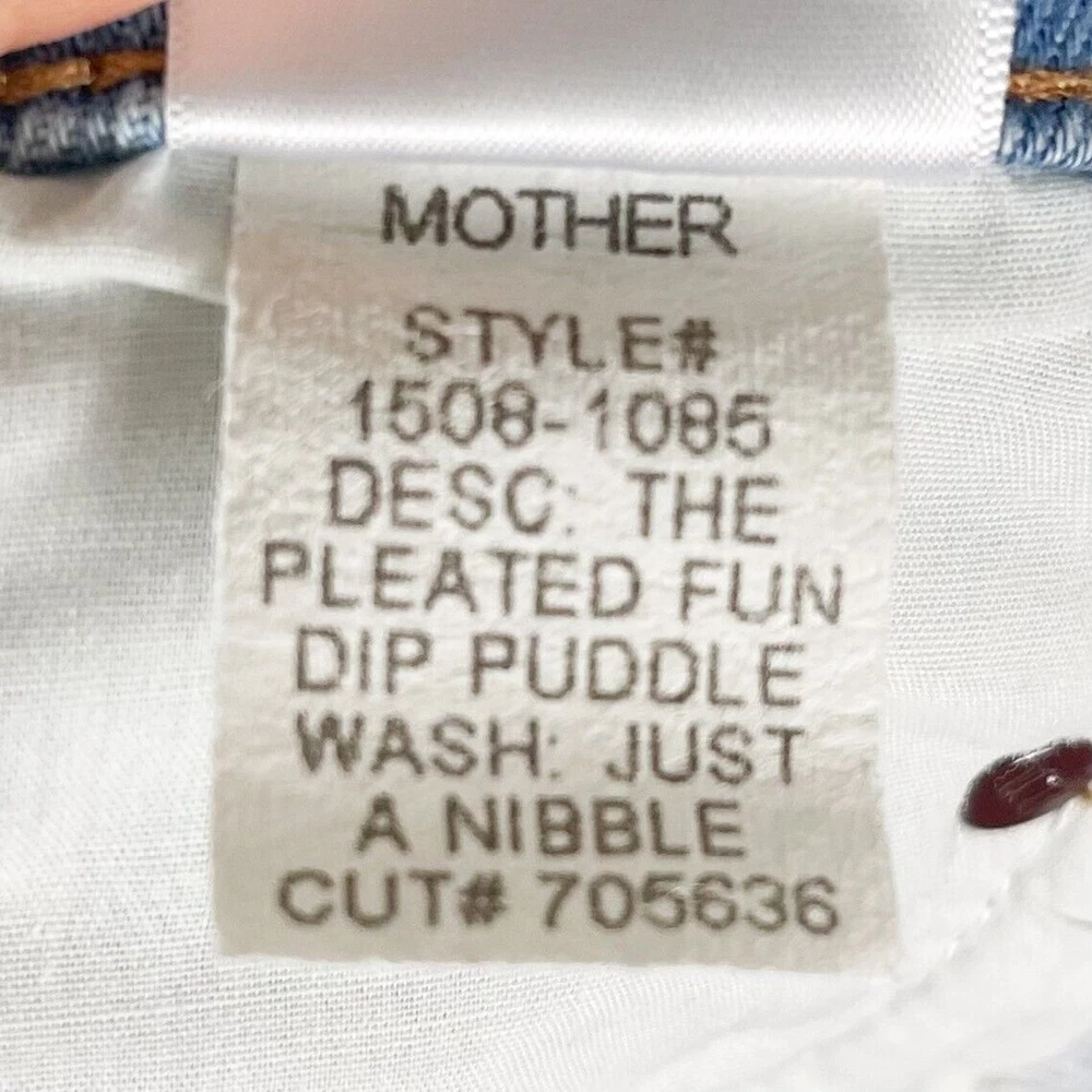 <![CDATA[<div>Mother Women's SNACKS! Just A Nibble The Pleated Fun Dip Puddle Jeans Size 32 A wide-leg jean from Snacks Mother is a throwback style front the 80's and 90's, reimagined for a new generation. Designed to be worn high. Button fly closure. Candy inspired interior rivets. 5 pocket design. Belt loops. Pleated front. “The Pleated Fun Dip Puddle”. Wash Color: “Just A Nibble”. 100% Cotton. Approximate Measurements Laying flat without stretching: Inseam: 30.5” Waist: 18” Front rise 14" Leg opening 9.5" MSRP $228