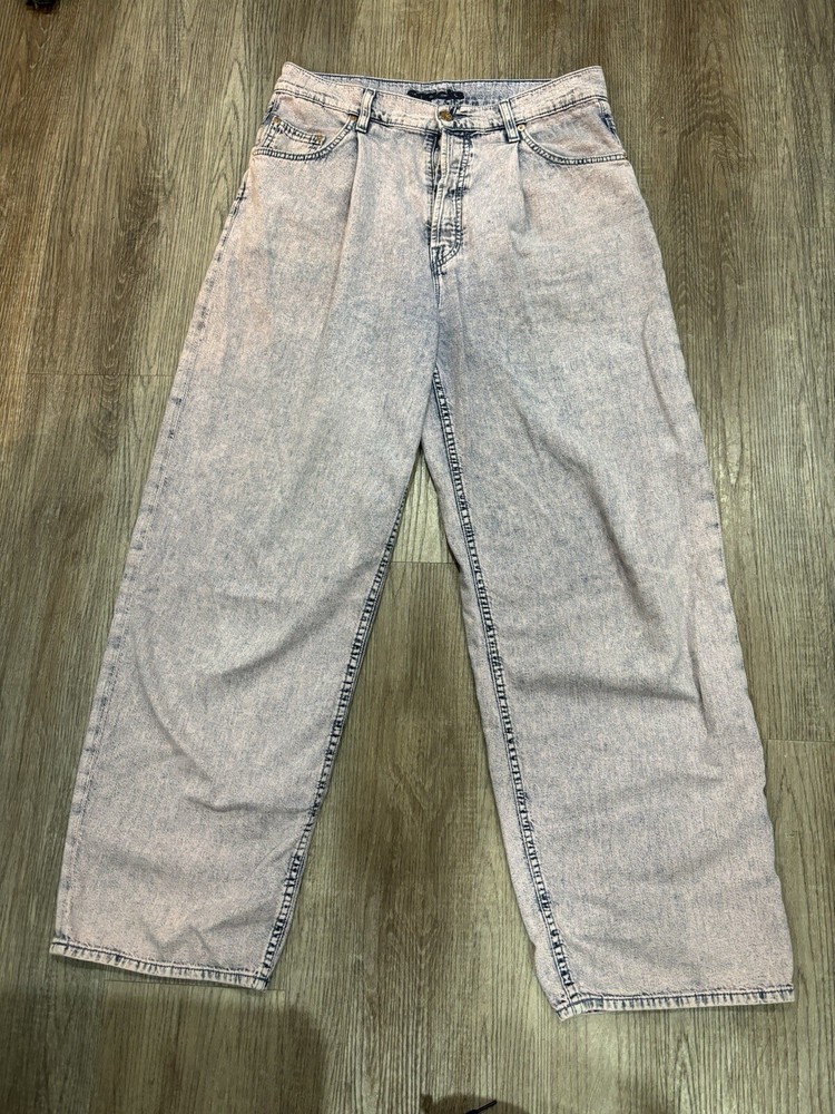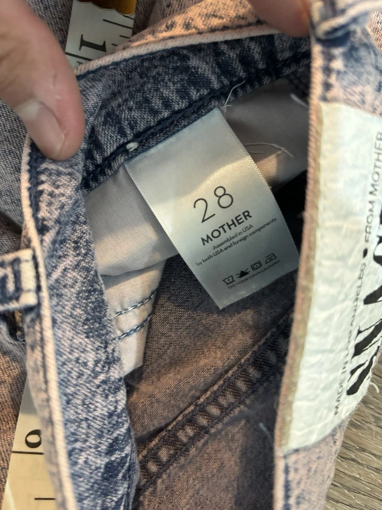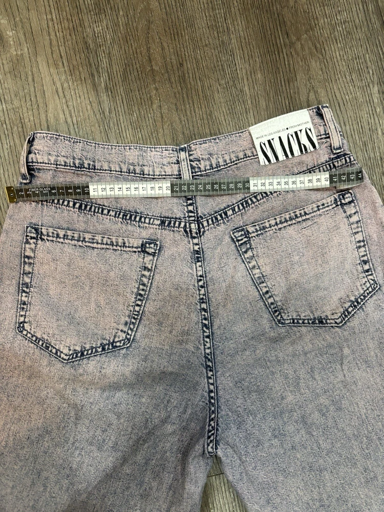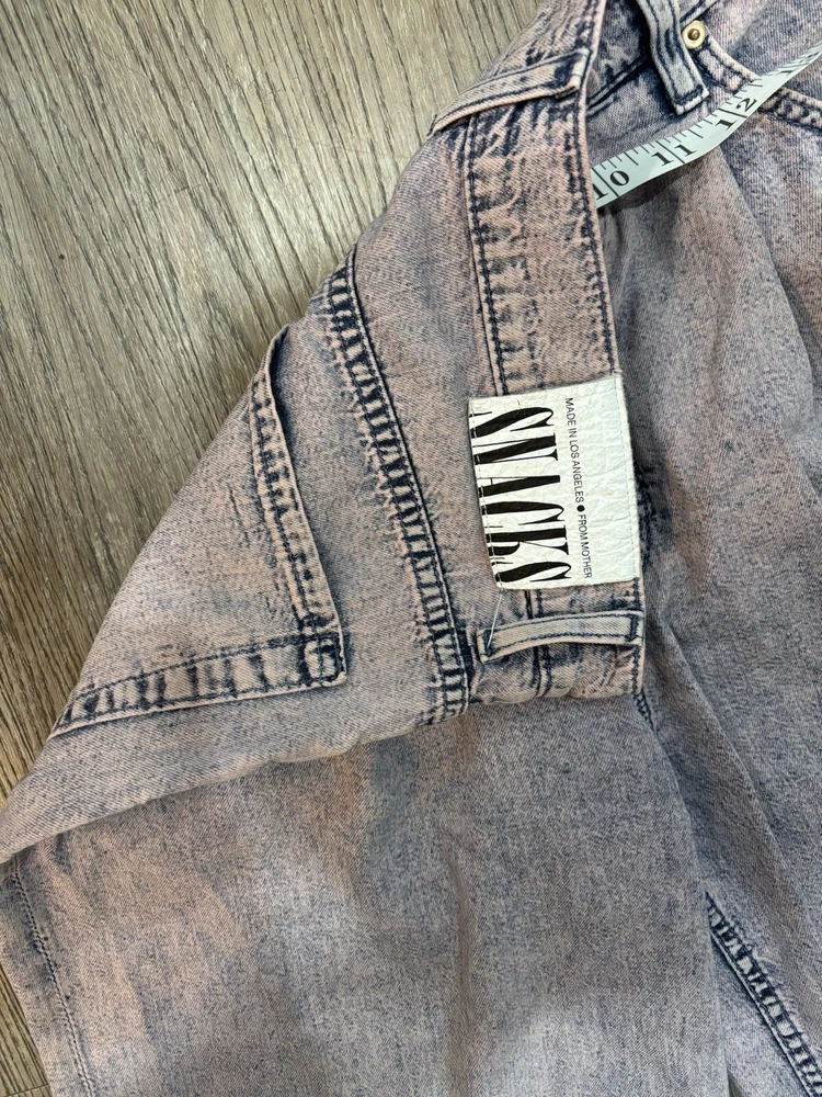 The "Mother Purple Denim Snacks The Pleated Fun Dip Puddle Wide Leg Jean" in size 28 features a unique design with pleats and a wide-leg style. Made from 100% cotton denim with an acid wash finish, these high-rise jeans have a relaxed fit and a 5-pocket design for added functionality. The vibrant purple color and fun theme make these jeans a playful and stylish choice for winter, summer, fall, and spring.