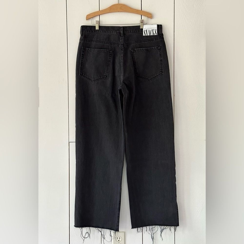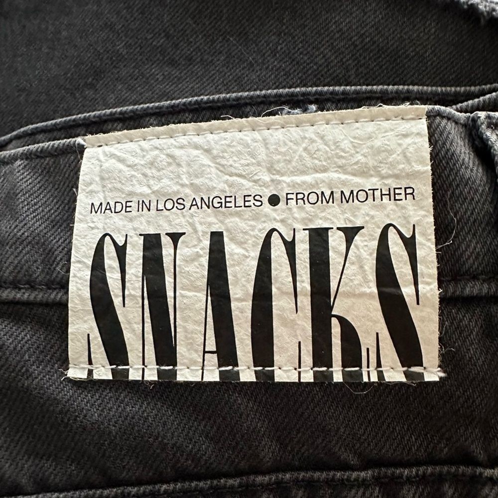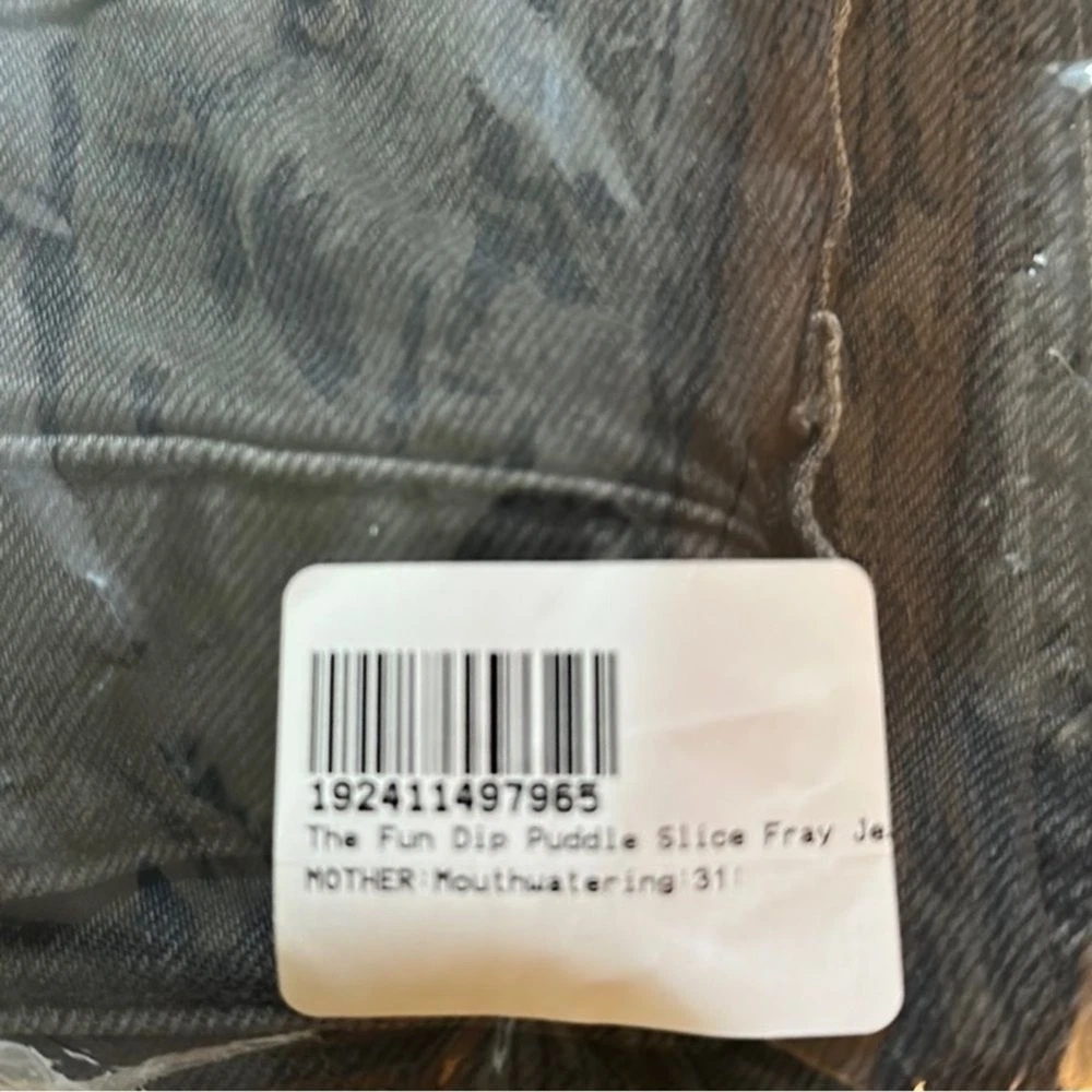 Mother SNACKS The Fun Dip Puddle Slice Fray Jeans Size 31 Brand new Please note this item was shipped by retailer without tags. Only tag is the sticker on packaging shown in photo These wide-leg jeans have slits along the outer seams that draw focus to your choice of shoes, be they sneakers, boots, or Birkenstocks. They’re cut from nonstretch denim in a faded black wash has a cool vintage feel. Color: Mouthwatering Approx flat measurements Waist 17" Inseam 31.5" Rise 13" Made in USA