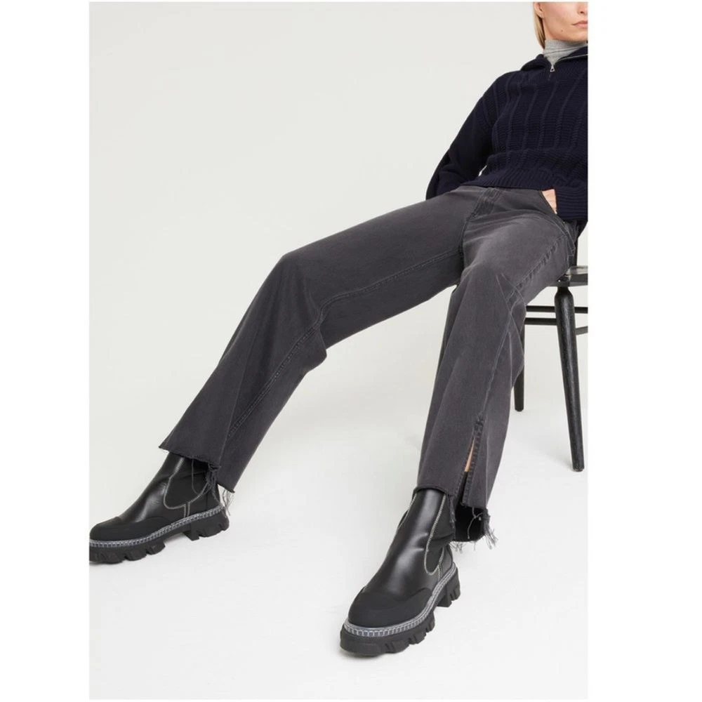 These jeans are so stylish and comfy! The wide-leg fit with the frayed slits gives them an effortlessly cool vibe, and the faded black wash pairs perfectly with anything. Perfect length and roomy waist make them super flattering. The quality is amazing—definitely worth it for a brand-new pair of Mother denim. Love the vintage look and the fact they’re made in the USA just adds to the appeal!