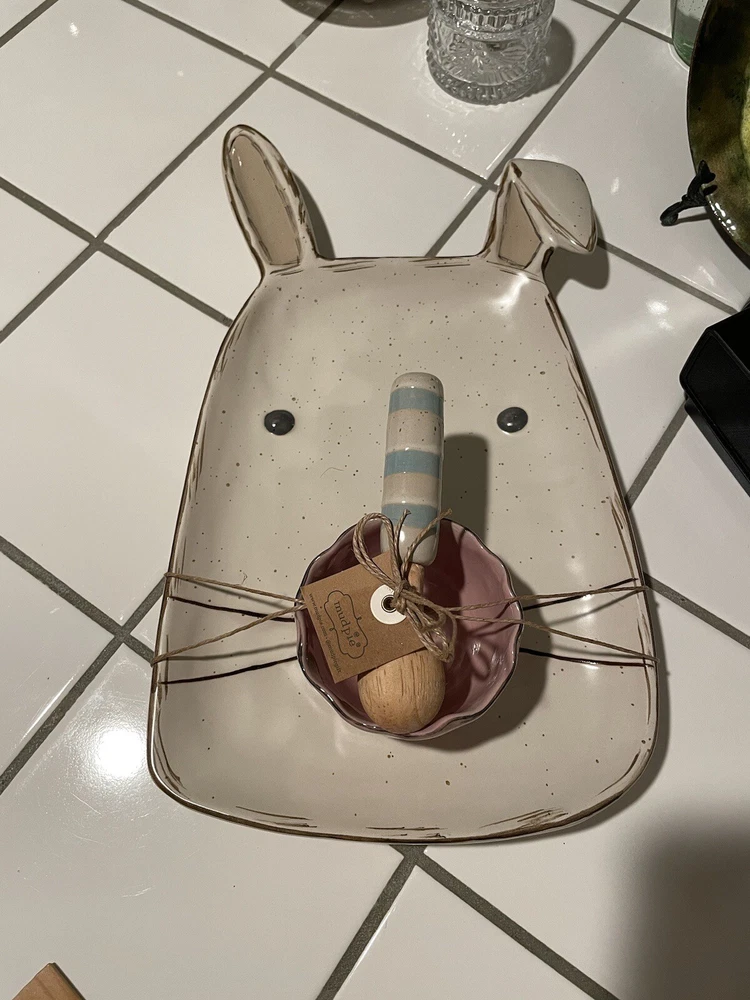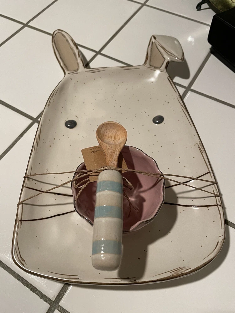 MudPie Chip Dip rabbit Tray With Bowl And Spoon. 2021. Extremely cute, selling on mud pie website for $55....