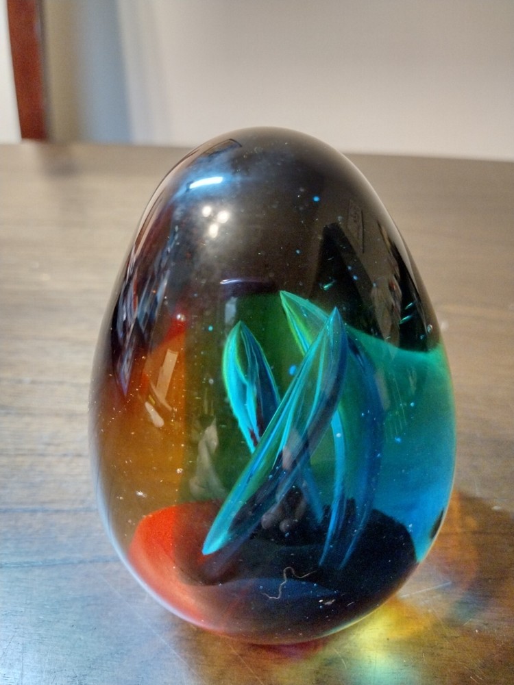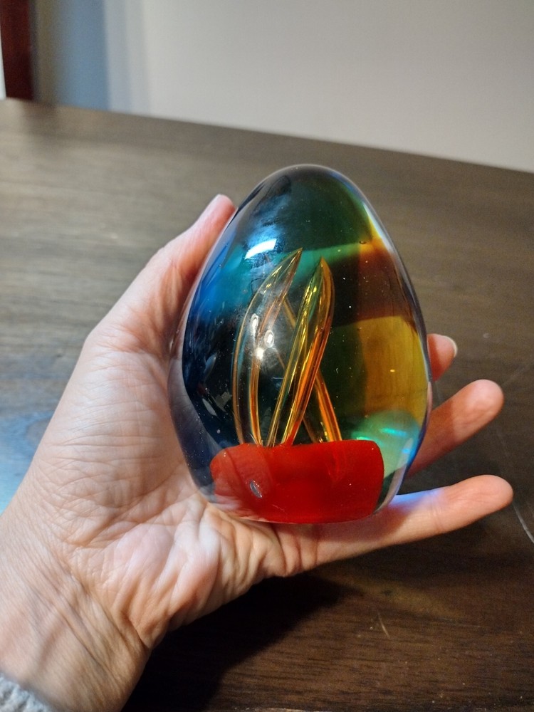 This stunning hand-blown glass paperweight is absolutely mesmerizing! The teardrop and bubble details catch the light beautifully, adding elegance to any desk or display. The craftsmanship is exceptional, with vibrant colors and a smooth, tactile feel. It’s both a functional paperweight and a tiny work of art—definitely worth every penny! So happy with this unique find.