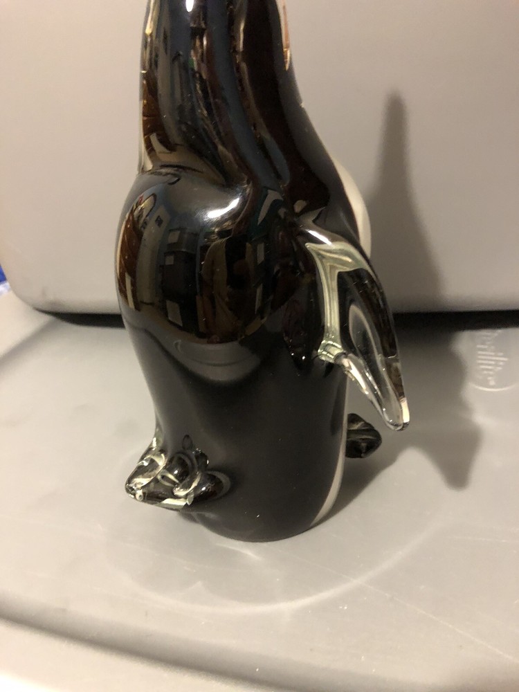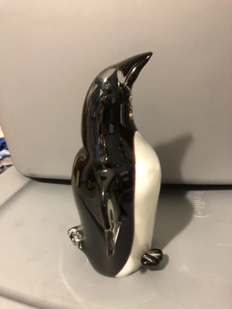 This adorable Murano penguin is a stunning vintage piece! The black glass has a beautiful luster, and the craftsmanship is incredible. The delicate details, like the beak and flippers, show true artistry. It’s a charming addition to any collection—small but packed with personality. The new protective packaging ensures it arrives safely. Love this mid-century Italian treasure!