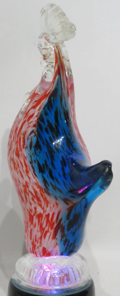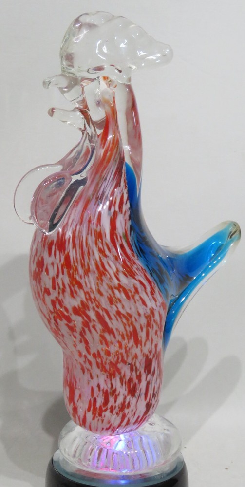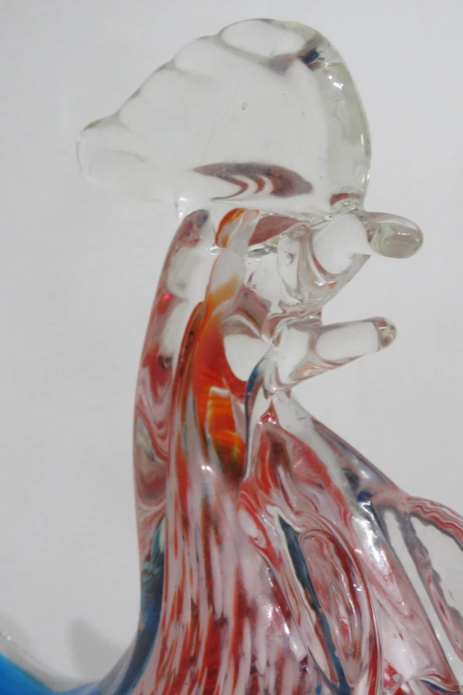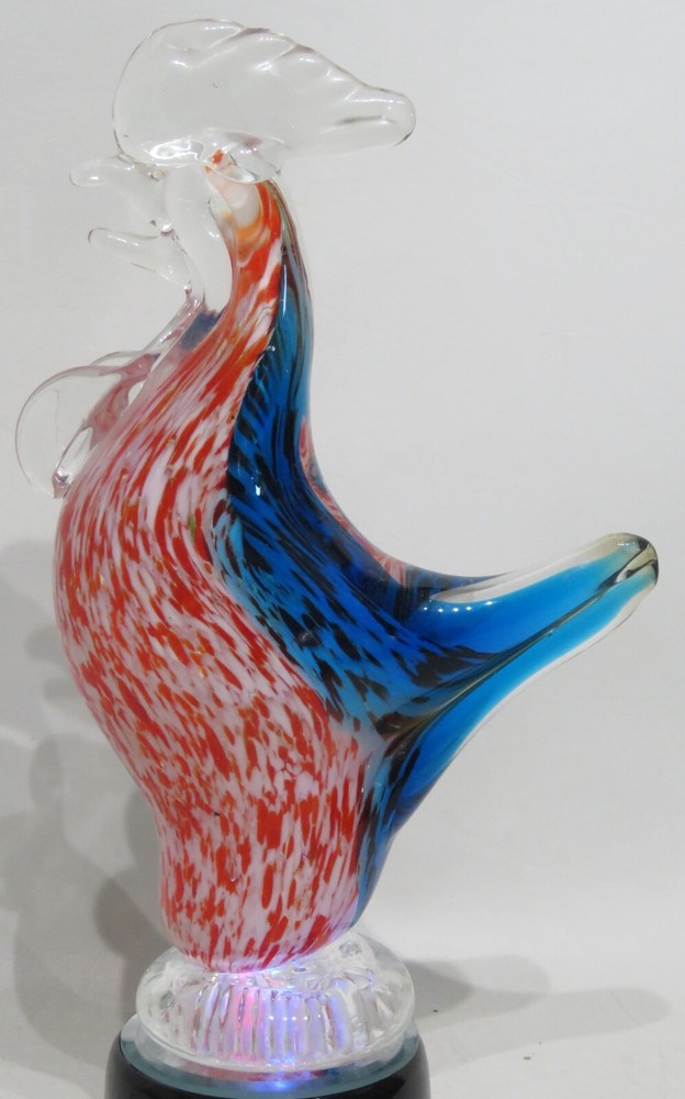 INTERESTING INFORMATION : I offer several shipping services. Make sure to choose the one that is the best rate for your location. ITEM DESCRIPTION: To see other orbs please click this Link . Beautiful 10" turkey shaped glass paperweight with a clear wattle and comb, a blue back and tail, and red and white mottled head and chest. The chicken is approximately 10" tall x 6" wide and weighs a hefty 3.14 pounds. Again, please scroll over the item with the zoom feature to see detail. FINE PRINT ABOUT US We find the treasures you've been looking for! I treat all of my customers with the greatest courtesy. If you feel there is a problem please write. Hard to believe I know, but, I have made mistakes ~ and I'm pretty sure I haven't made my last one. The good news is that I always set my mistakes to right if given the chance. TERMS OF SALE Please look your item over carefully before you purchase (use the magnifier). I try very hard to take representative pictures and give details about the product so that you know what you are purchasing. If my detail doesn't answer your question please write. Thank you in advance. FINAL DETAILS If you purchase multiple items don't pay until I package them and invoice you. Please note that any photos in my listings are the real item. I don't use stock photos. Ask questions if I have not been clear in my listing before you bid. Enjoy shopping. Support your local merchant ~ and your friendly eBay seller. Visit my store when you get a chance. I carry a wide variety of interesting , useful, unique, and unusual items. This is a great place for gift shopping . I am always happy to combine shipping costs. PAYMENT Please make payment within 3 days of purchase. If you need more time please write. If you change your mind please write. SHIPPING PLEASE NOTE: Books, tapes, DVDs all ship by Media ail . It's not the quickest but it will save you lots of money. If you need something quicker just let me know and I will let you know the new shipping charges and re-invoice you for the difference. PACKAGING: I use used boxes and fluff. I do this because I care about the planet and all who live here and my future generations . Just thought you should know. SHIPPING COSTS: I charge actual shipping to your location . SHIPPING TIME: I usually ship the same or next day after your purchase depending on whether my mail has already been picked up . If you purchase on a Friday after mail time I may not be able to ship until the following Monday. TIMELINE: When I ship you will receive a letter from PayPal with your tracking information. There is a link on eBay so you can check the progress of your package.