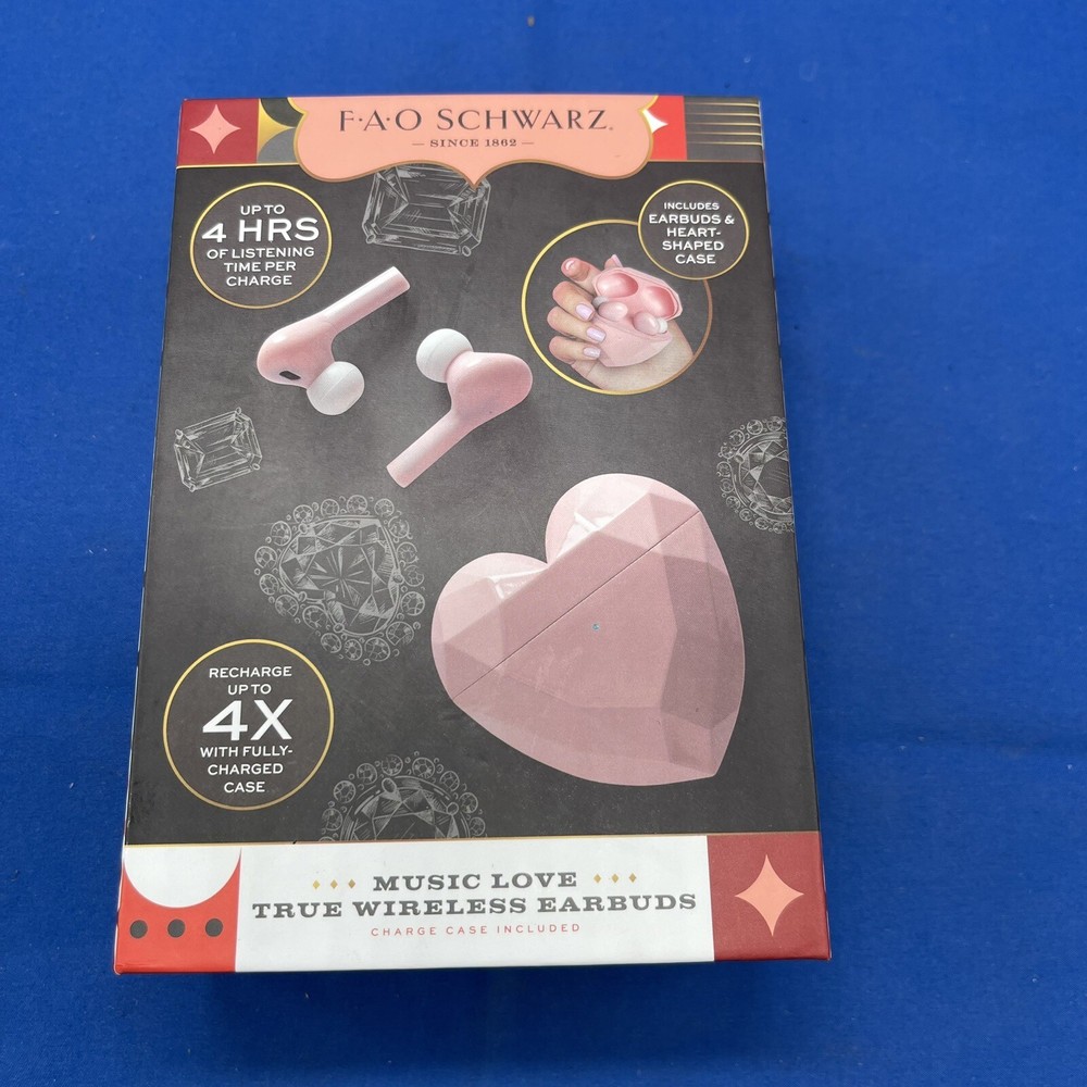 Discover the ultimate wireless music experience with these pink earbuds and heart-shaped case from FAO Schwarz. Designed for music lovers, this set comes with a convenient charging case and wireless connectivity for a seamless listening experience. The earbuds fit comfortably in your ears with a built-in microphone for hands-free calls, making it perfect for on-the-go use. With a double earpiece and in-ear design, these earbuds produce high-quality sound that will take your music to the next level. The sleek pink color adds a fun and playful touch to your style. Ideal for all types of activities, these wireless earbuds are the perfect accessory for anyone who loves music and wants to enjoy it without any hassle.