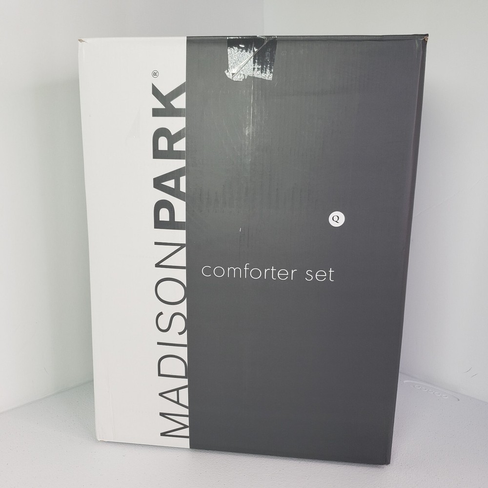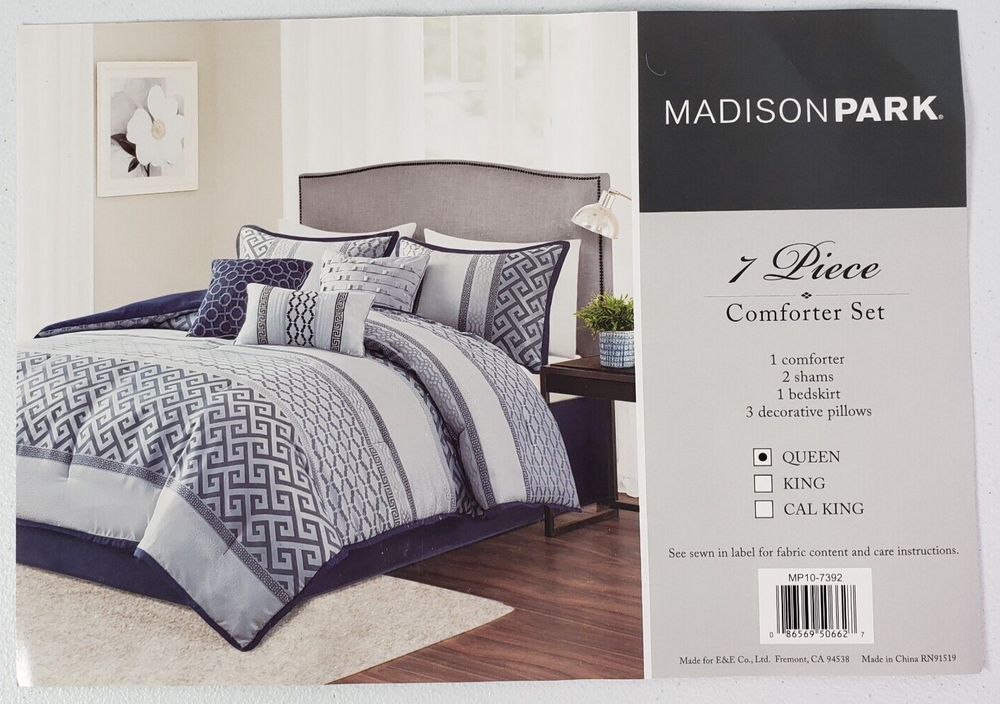 NEW $199 Madison Park 7 Piece Jacquard Queen Comforter Set Navy MP10-7392 Ships Fast!...