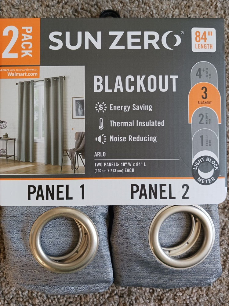 Enhance the ambiance of any room with these modern Sun Zero Arlo blackout curtain panels. Measuring 40 inches in width and 84 inches in length, these panels feature a grommet curtain heading for easy installation using holes for a rod. The charcoal color, made of durable polyester material, gives a textured and noise-reducing effect, making it perfect for indoors. These curtain panels are compatible with single hung windows and weigh light to medium with features like blackout and textured that make them a perfect addition to your home decor. Not only do they add style to your house, but they also help in reducing outside noise.