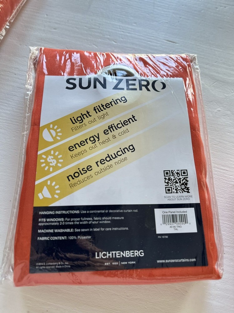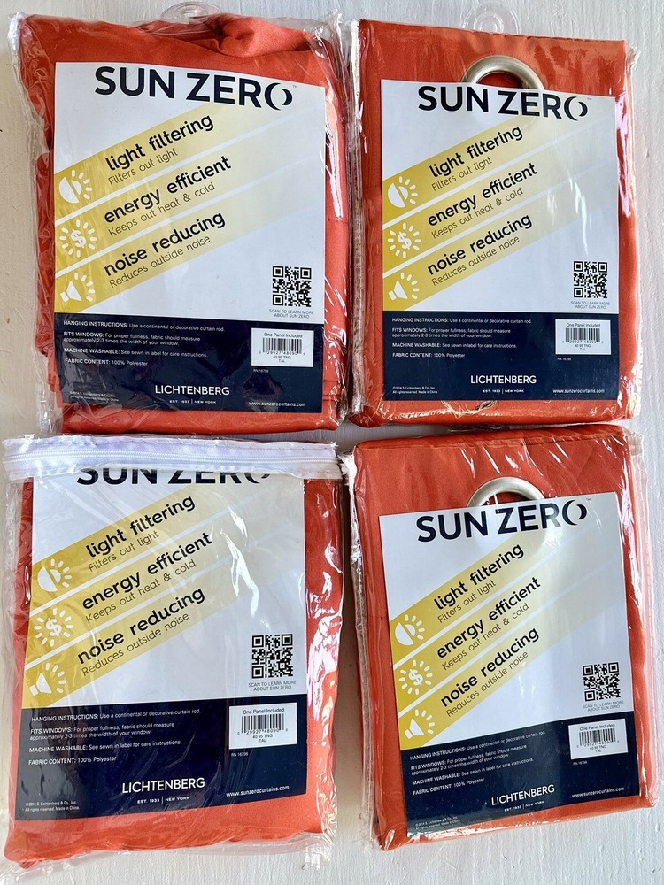 Brand new in packaging 4 Sunzero window panels in vibrant orange -Light filtering -Noise reducing -Energy efficient 40x95 with grommet top...