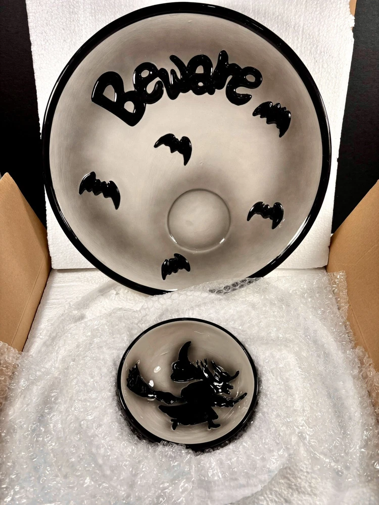 NEW American Greetings Carlton Cards Halloween "CHIP N DIP SET" LARGE Size 14" BRAND NEW - SERVING PLATE w/ BOWL ORIGINAL BOX DOES HAVE WEAR AND DAMAGE. SUPER CUTE!!!!! Tray Diameter: 14 in Please look at ALL of the pictures carefully, pictures can provide the best description. What you see in the pictures is exactly what you will receive. Feel free to ask any questions. Please check out our store for more great items. Thank you so much!