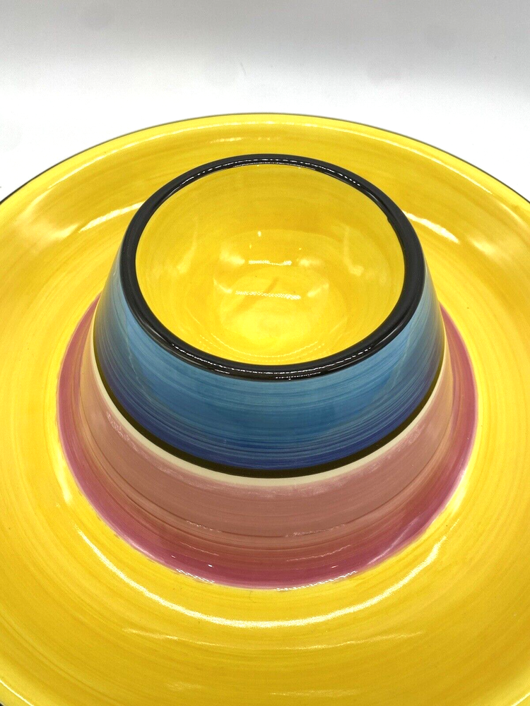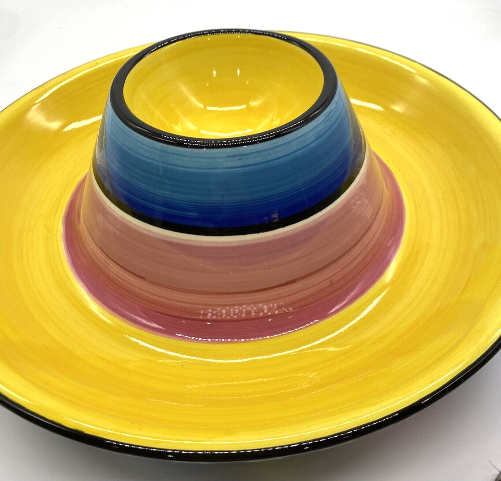 NEW Certified International Nancy Green Serape Large Sombrero Chip Dip Server Approx. 14" diameter All items that are either gently used, vintage, or antiques should be expected to have signs to show their age. This could include scratches, minor wear or tear, yellowing fading, etc...due to age and use. This usually adds to the uniqueness and individuality of the item. I will try to point this out by photos or in my description when listing the item. I am a novice and a collector at heart definitely not a professional. All vintage, collectibles, and antiques will be identified to th e best of my ability and knowledge. If items are listed as NEW I will note that they are NEW and unused. If there are any flaws that I am aware of I will note that in the description. All items will have taxes charged as applicable by eBay at checkout either on the item for Sales Tax and/or Shipping and Handling. I will be taking great care when packing items. Many of my items are unique and I normally only have one of each of them. All packages will be placed in the mail 3 days after payment is made by buyer. Thank you so much! Please "Shop Magnolia New and Old" again!