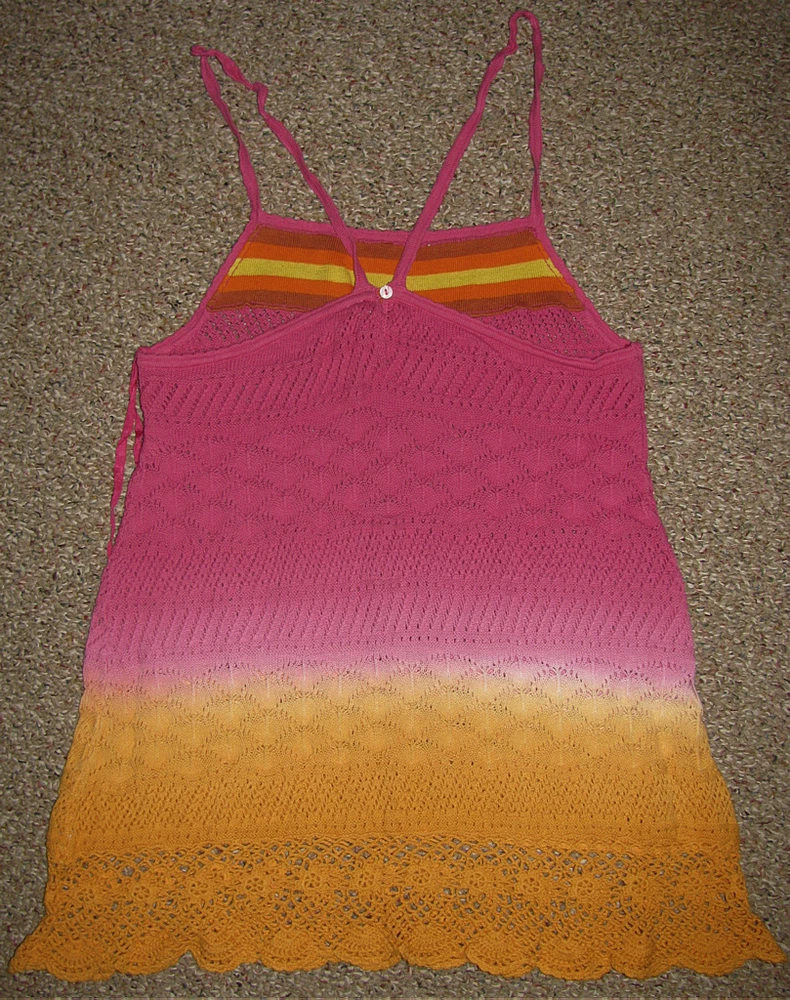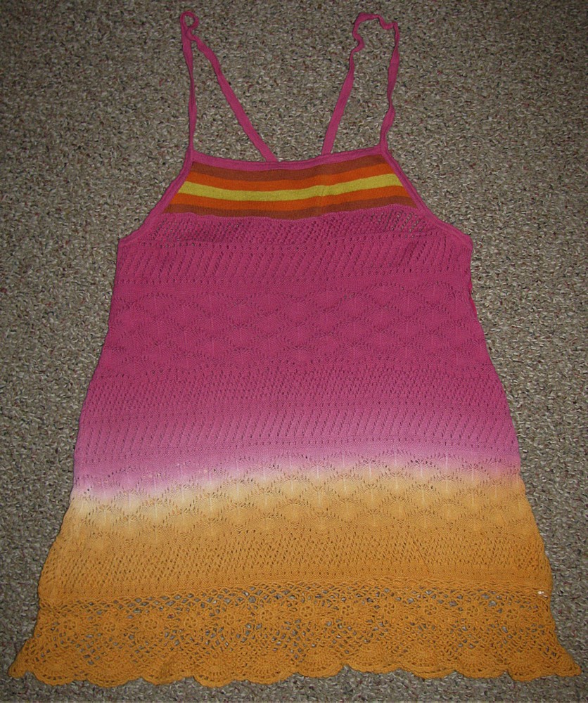 Up for your consideration is a BRAND NEW Bohemian KNIT Top from ~ * FREE PEOPLE * ~ Bohemian DIP-DYE OMBRE CROCHET-TRIM Tunic Size L MRSP: $108.00 PINK / ORANGE Sherbert The PERFECT Summer Top - Breezy, Sweet & OH-SO-Charming ~ * ~ * ~ * ~ ~ * ~ * ~ * ~ ~ * ~ * ~ * ~ Back in the 70's, Dick Hayne planted a seed in the maze of streets and trees that make up West Philly, PA when he opened a store called ~ * FREE PEOPLE * ~ . He nurtured the yound people who lived & shopped there, who looked for a little of their own freedom in the clothing they wore. The compoany has seen many changes, but has gone back to their roots of FEMININITY, COURAGE & SPIRIT. They are a mature, contemporary brand that caters to intelligence, creativity & individuality, while maintaining their great quality. Who wears ~ * FREE PEOPLE * ~ ? A woman who's smart, creative, confident & comfortable in all aspects of her being, free & adventurous - from sweet to tough, from tomboy to romantic...a girl who likes to keep busy and push life to its limits - traveling, hanging out, and everything in between! ~ * ~ * ~ * ~ ~ * ~ * ~ * ~ ~ * ~ * ~ * ~ This head-turning top will make a great addition to your wardrobe in the warmer months ahead ! Make an impression wherever you go with this great, OH-SO-SOFT BOHEMIAN flavored piece from ~ * FREE PEOPLE * ~ - great for wearing with jeans, mini skirt or even dressy pants for a " NEUVO CHIC " look - for work, school, outing, dinner date or night out on the town - so versatile for a variety of occasions, or no occasion at all! This oh-so-pretty, super stretchy OMBRE KNIT TOP comes in a lovely SHERBERT PINK / ORANGE blend. It features HORIZONTAL STRIPED TOP BAND (with SCALLOPED KNIT EDGING ), SPAGHETTI STRAPS (that meet at the center back BUTTON-CLOSE ), MULTIPLE HORIZONTAL BANDS of beautiful OPEN KNIT-WORK (that change colors from PINK at the top to TANGERINE at the bottom) and delicate, OH-SO-DAINTY wide CROCHETED SCALLOPED BORDER . The beautiful SWING-TOP cut is SOOO flattering for a wide variety of shapes and sizes, and the OMBRE COLOR GRADATION is truly stunning... ... WOW ! You'll turn heads everywhere you wear this STYLIN' yet BOHO CHIC top from ~ * FREE PEOPLE * ~ . This beautiful top isn't your everyday Summer top - it retails in upper-end department stores (Nordstrom, Neiman Marcus, Bloomies...) and specialty shops for $108.00 , but you can get it here for a lot less, and without the guilt! CHECK MY FEEDBACK & BID WITH CONFIDENCE! ~ * ~ * ~ * ~ DETAILS : 100% Authentic 100% SUPER SOFT Cotton Knit Size L : WIDTH: 16 1/2" laying flat, armpit to armpit , UNSTRETCHED (stretches to 20") LENGTH: 19 1/2" down the side seam (underarm to bottom edge ) ~ * ~ * ~ * ~ ~ * ~ * ~ * ~ ~ * ~ * ~ * ~ Pl ease email me if you have any questions or would like further pictures This item comes from a smoke-free home PLEASE READ BEFORE BIDDING : This item is BRAND NEW and a FINAL SALE , so please email me with any questions BEFORE bidding. I will be happy to clarify or answer any questions. I have made every effort to make the descriptions as clear as possible . I accept PayPal . Item will ship once cleared payment is received . Shipping is USPS PRIORITY MAIL Winning bidders must make arrangements to pay within 3 days of the end of the auction and payment must be received within same time frame via PAYPAL unless prior arrangements have been made or the item will be re-listed and negative feedback left . International Buyers – Please Note : · Import duties, taxes and charges are not included in the item price or shipping charges. These charges are the buyer's responsibility . · Please check with your country's customs office to determine what these additional costs will be prior to bidding/buying . · I cannot mark merchandise as "gifts" - US and International government regulations prohibit such behavior . Check out my other auctions - I add new items DAILY! Thanks for looking & HAPPY BIDDING! :-)