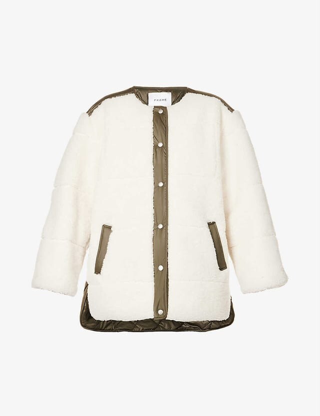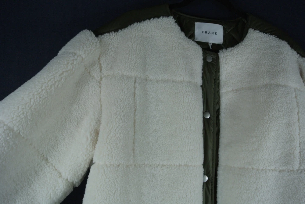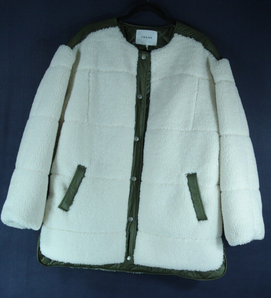 For Sale 100% Authentic NEW Frame Oversized Dipped-Hem Recycled-Polyester Jacket Size L Details $698 Color: Cream Multi Size: L Underarm: 23" across (closed) Length from shoulder: 31" Sleeves: 25" Hem :27" across Details And Care: Don't be fooled by FRAME's sun-soaked LA roots: the label proves it still knows a thing or two about Autumn/Winter layering with this jacket. Emulating the reassuring comfort of a cosy throw, this style is shaped into an oversized, drop shoulder silhouette that nonchalantly drapes over frame. Laced with contrasting trims and falling to a dip hem, it's spun from a toasty teddy-like fabric that's entirely spun from recycled polyester – how's that for a fun planet-friendly fact? Product Code: R03960323 Fabric: Mid-weight, non-stretch fleece Quilted technical weave lining Round neckline and long sleeves Snap placket Welt front pockets Shell: 100% recycled polyester Lining: 100% polyester Dry clean Imported, China Please Check out my other items ! Shipping: Combine shipping is available, please message us when you done your shopping, items will be shipped within one business day after we received your payment. RETURN POLICY: Restocking fee 10% will be charged on return of this item. Returns are accepted on all merchandise, no questions asked. The best way to start a return is by using the returns feature in My Ebay. -The #1 reason for returns are due to sizing issues. If you are unsure about sizing, please ask us for measurements and compare the measurements to clothing that you own. - Please return the item in UNUSED condition - The buyer is responsible for return shipping - All items must be shipped back within 14 days of receiving the item - All items must be returned with a tracking number - If the condition of the item has changed, the item will not be accepted for return To international buyers: Import duties, taxes, and charges are not included in the item price or shipping cost. These charges are the buyer's responsibility. Please check with your country's customs office to determine what these additional costs will be prior to bidding or buying. Please take note that International packages may take several weeks or more to arrive as they may get held up and delayed at the Customs, which is out of our control. We are not responsibility for lost or damage of items. About us Smoking-free clean environment Contact us Please feel free to contact us through eBay message if you have any questions???